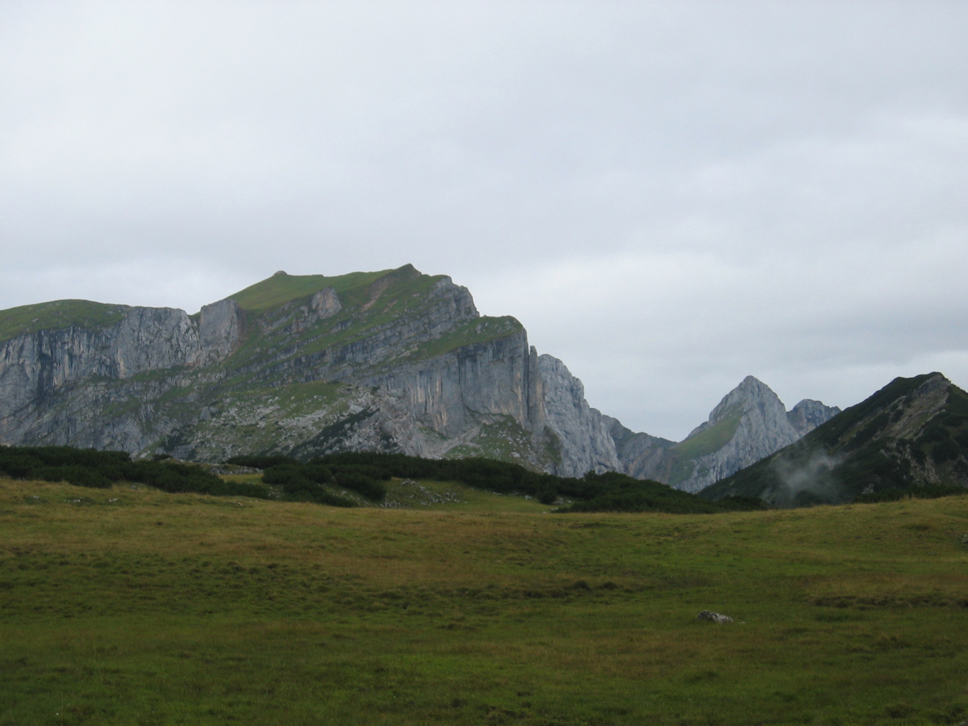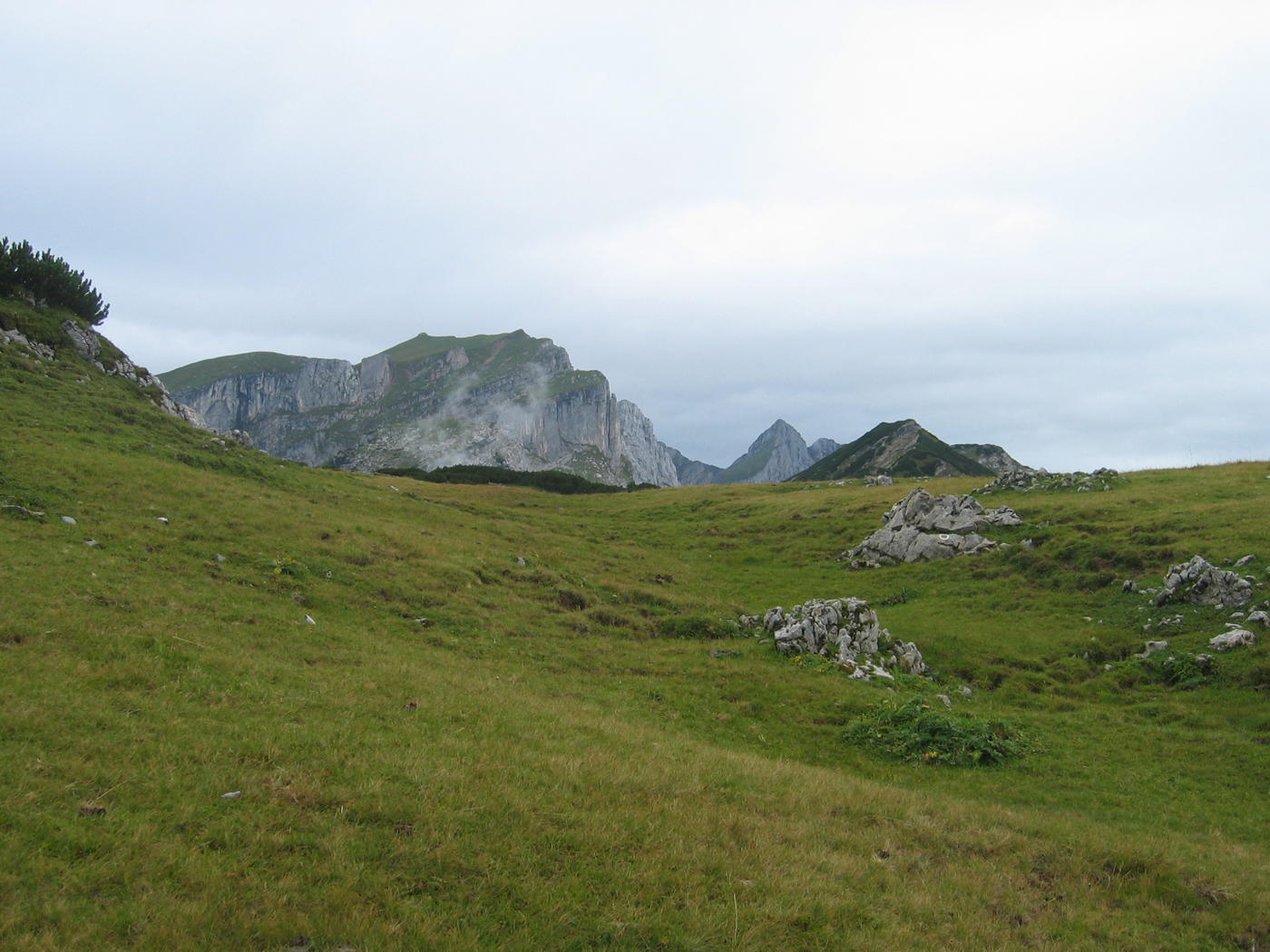 Nach einer schönen USA-Reise, unter anderem mit Besteigung des Mount Whitney (meines ersten und einzigen Vierzehntausenders), sollte die Kondition locker für eine Überschreitung des Rofanstocks ausreichen. Von Kramsach aus geht es, vorbei an Pletzachalm und Hochalm, auf den Roßkogel. Das Panorama ist durch Wolken beeinträchtigt, aber es bleibt im Wesentlichen trocken, und für morgen ist bestes Wetter angesagt.