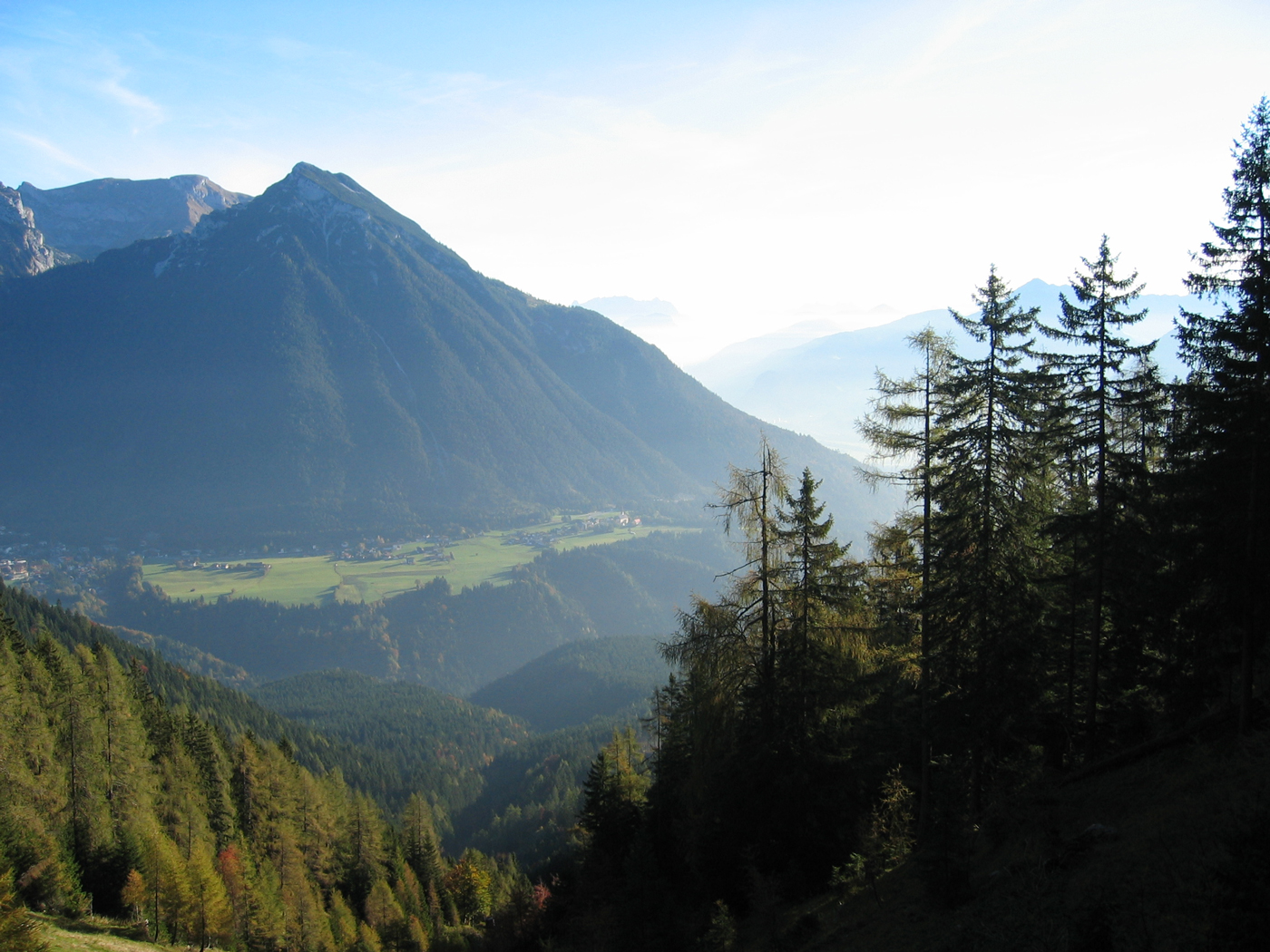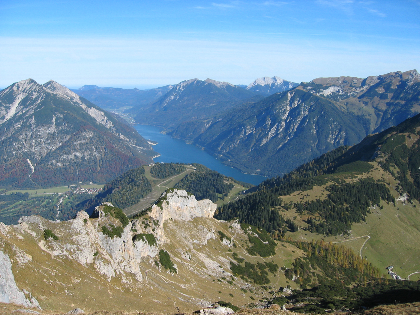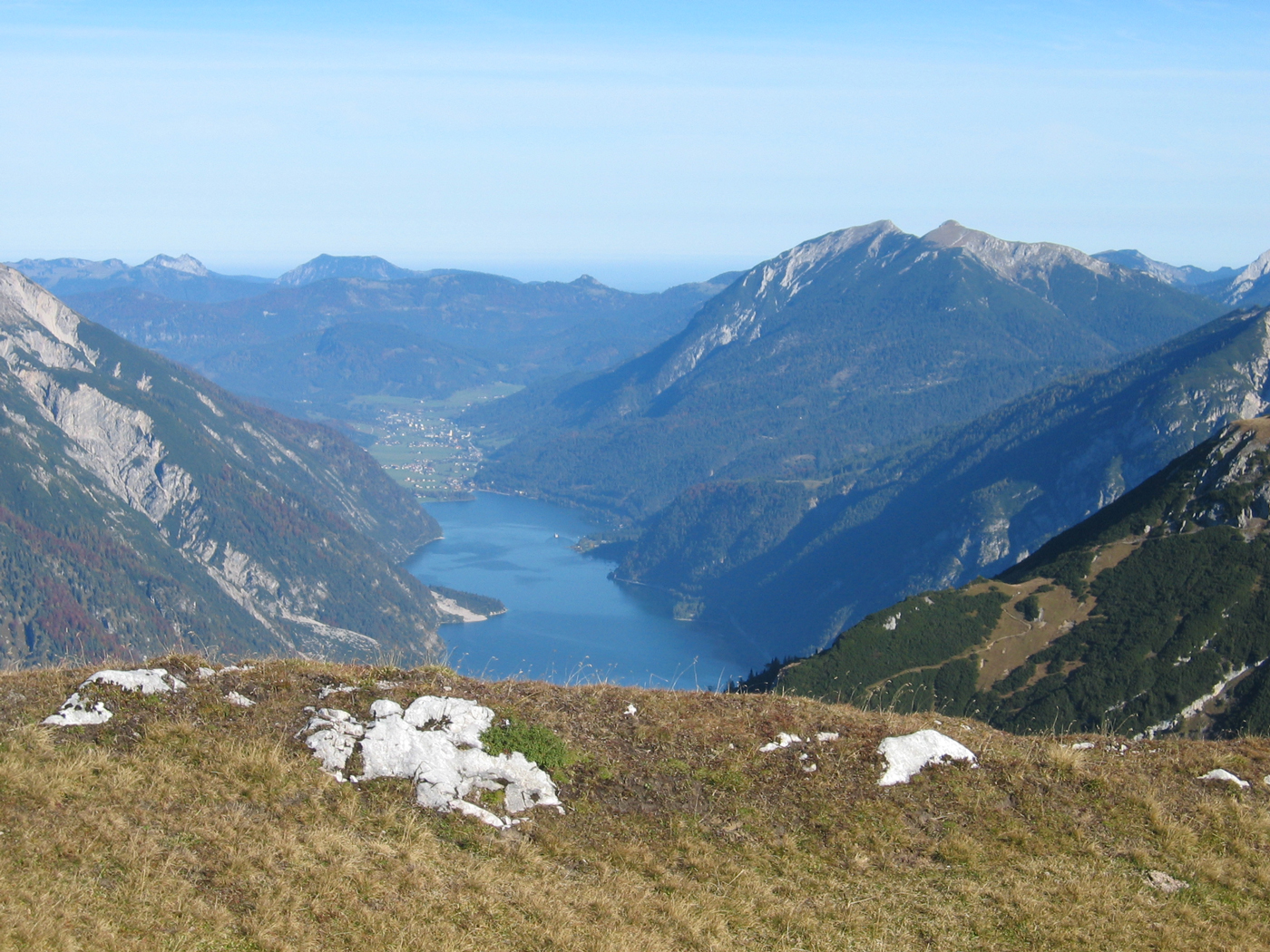 Der Abstieg, schon recht spät am Nachmittag, erfolgt in nördlicher Richtung über die Dristl-Alm zur Falzthurn-Alm. Um nach Maurach zurückzukommen, ist jetzt noch ein längerer Talhatscher fällig; über Pertisau geht es am See entlang zum geparkten Auto.