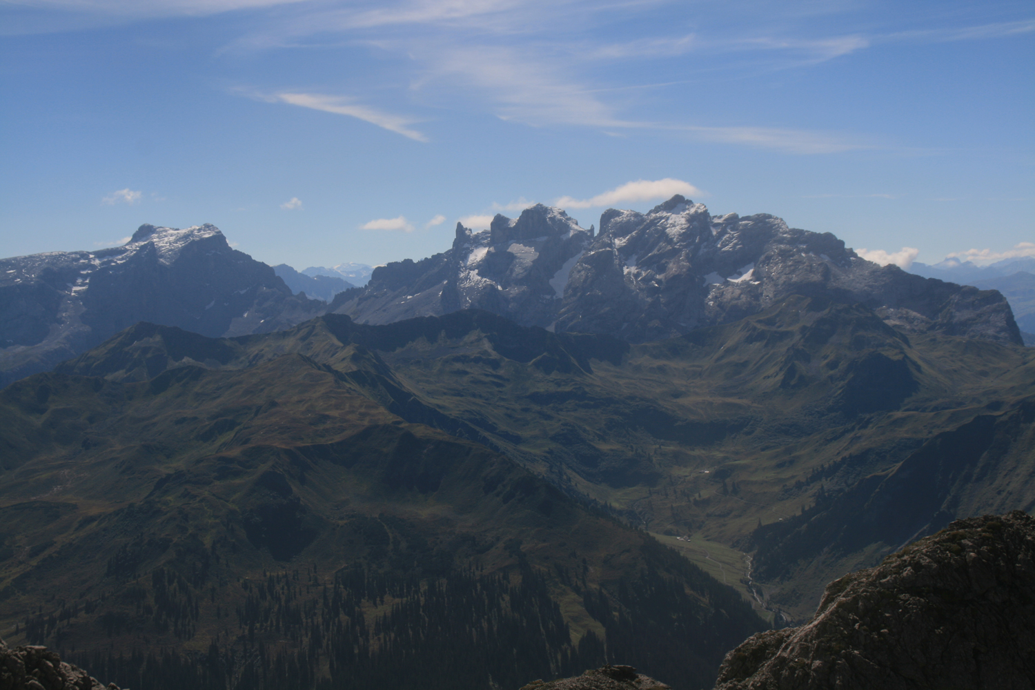 Auf meiner langen Ost-West-Wanderung bin ich inzwischen im Rätikon angekommen, einer Gebirgsgruppe, die mit bisher völlig unbekannt war. Ich habe die Absicht, diese Gegend besser kennenzulernen. Diese Wochenendtour soll der Einstieg dazu sein. Startpunkt ist Brand, ein Dorf zwischen Bludenz und dem Lünersee. Auf der rechten Seite des Alvierbachs marschiere ich abwärts bis zum Stachelhof, wo der einfache Weg zur Sarotlahütte abzweigt. Nach etwa 650 Höhenmetern mit viel Wald ist die Hütte erreicht. Ich trinke einen Kaffee, bevor ich zur Gipfeltour aufbreche.
