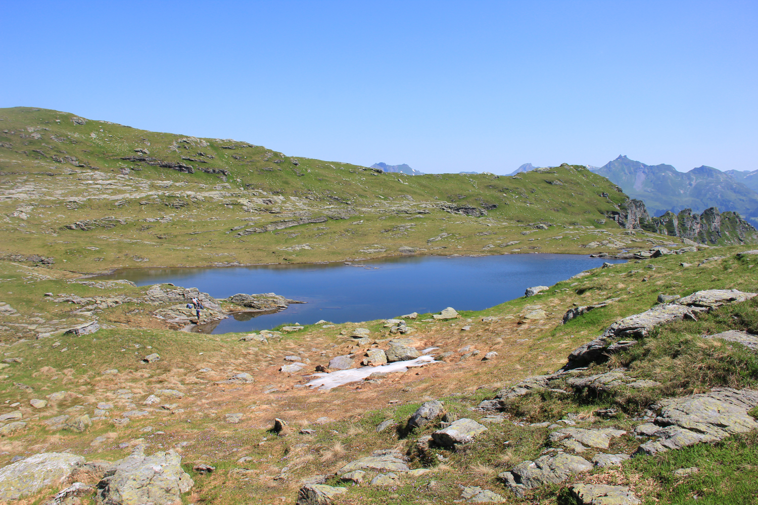 Bei schönstem Wetter – noch sind die Temperaturen erträglich – starte ich im Dorf Elm und steige auf problemlosen Wanderwegen zum Ampächli auf, das man auch mithilfe einer Seilbahn erreichen könnte. Besonders die Segnas-Gruppe, das Martinsloch und der Hausstock ziehen die Blicke auf sich. Auch der Weiterweg zum höchsten Punkt der Tagestour, dem Wildmadfurggeli, ist einfach und aussichtsreich. Es geht vorbei am idyllischen Chüebodensee und an einem kleineren See, bis schließlich die Scharte erreicht ist. Als neues Highlight setzt sich hier das Glärnisch-Massiv in Szene. Der Weiterweg führt etwa 200 Höhenmeter abwärts, bis von rechts (Norden) der Weg vom Garichti-Stausee einmündet. Anschließend geht es wieder aufwärts zum Sunnenbergfurggele, von dem es nur noch ein Katzensprung bis zur Leglerhütte ist.