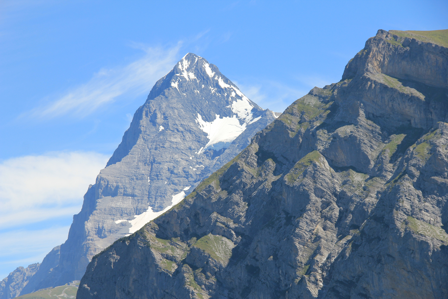 Erst nachdem ich den Ort hinter mir gelassen habe, wird es merklich ruhiger. Auf einem stellenweise richtig idyllischen Weg – mit Ausblicken auf die berühmten Drei (Eiger, Mönch, Jungfrau) – geht es weiter zur Alphütte Spilboden. Ein steiler Zwischenaufstieg bringt mich zum höchsten Punkt des Tages (etwa 2100 m), bevor in sanftem Abstieg mein Tagesziel, die Rotstockhütte, erreicht ist.