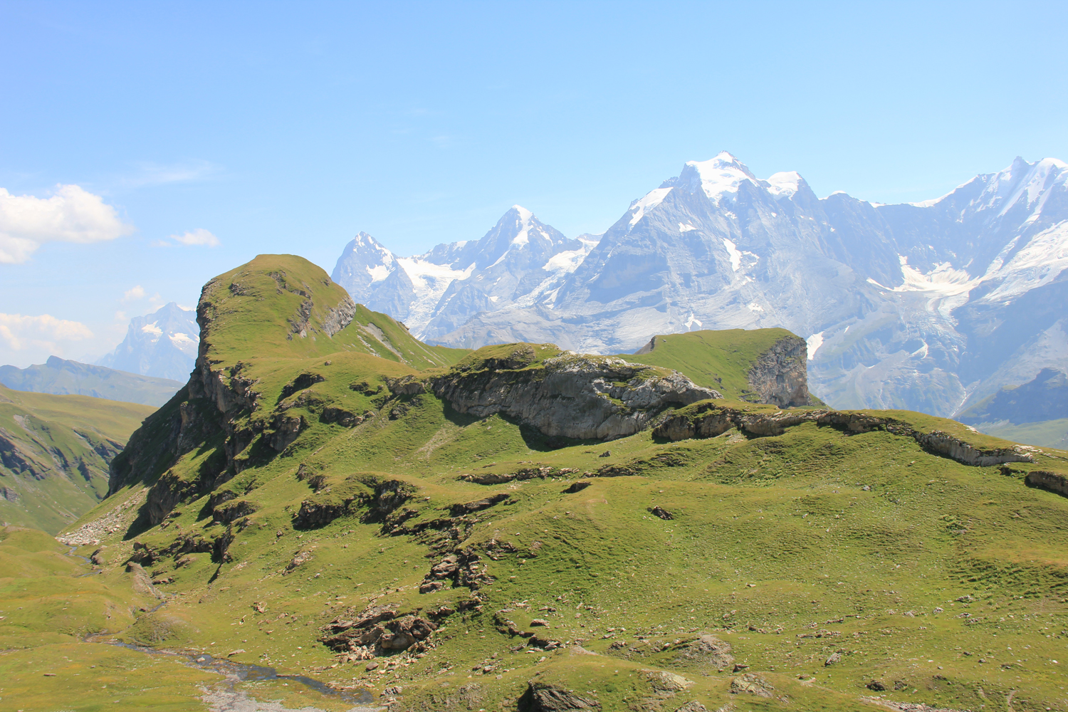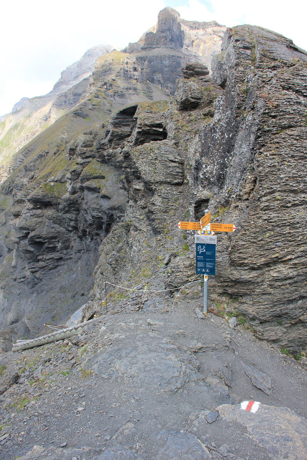 Zahlreiche Treppenstufen prägen den obersten Teil des Abstiegs von der Sefinafurgga – nicht besonders angenehm für leicht ramponierte Kniegelenke. Über einfache Pfade geht der Weg weiter zur Oberen Dürreberg-Alpe und in Richtung Gamchibach-Tal. Oberhalb des Tals wandere ich hinüber nach Golderli und zum Übernachtungsziel Griesalp.