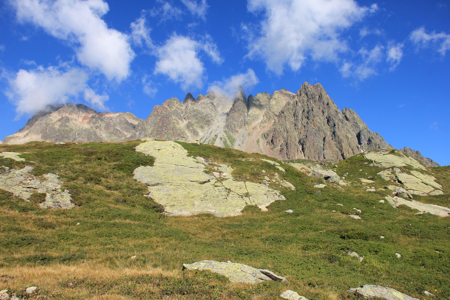 Die heutige Etappe meiner Weitwanderung muss man nicht lange anpreisen. Der Grand Balcon Sud ist eine wohlbekannte Tour, zum größten Teil eher ein Spaziergang, mit herrlichem Blick auf die unzähligen Granitspitzen der Mont-Blanc-Gruppe. Eine kurze Kraxelei im Aufstieg von Montroc her ist der Grund dafür, dass ich die Tour trotzdem mit T3 und nicht mit T2 einstufe.