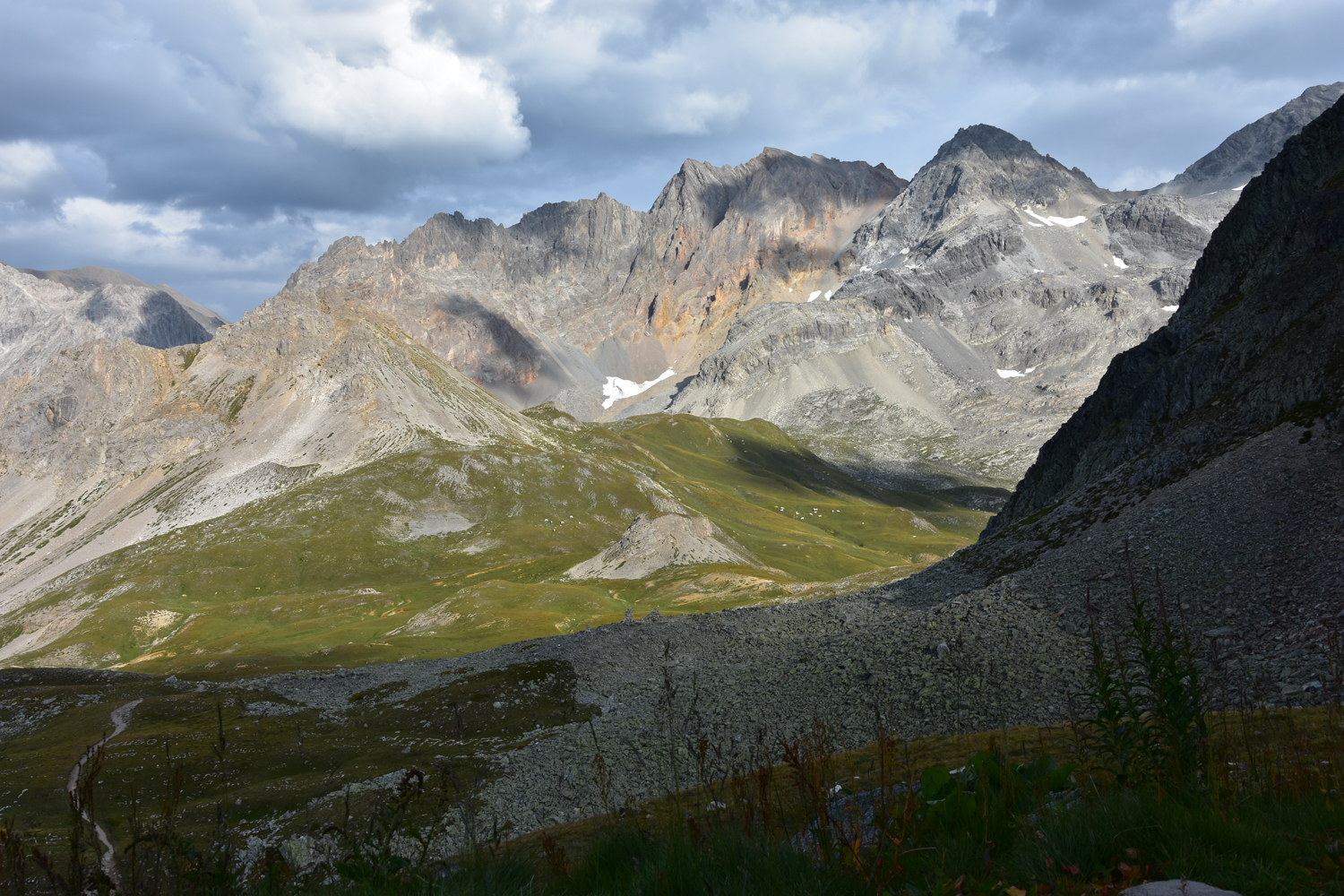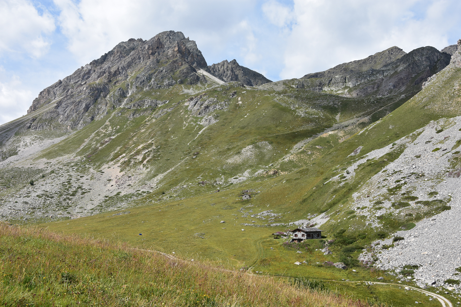 Die heutige Etappe ist vielleicht nicht die interessanteste, hat aber ordentlich Höhenmeter. Kurz nach dem Start am Bahnhof Modane beginnt ein ziemlich steiler Aufstieg, fast immer im Wald und zunächst weitgehend ohne Aussicht. Erst nach gut zwei Stunden kommt man in offenes Gelände. Der Weg führt hier über schöne Bergwiesen zum Col Vallée Étroite. Hier ist es nicht mehr weit zu meinem Tagesziel, dem Refuge du Thabor. Leichtsinnigerweise habe ich nicht reserviert, nicht zuletzt wegen fehlender Französischkenntnisse. Zuerst wird mir vorgeschlagen, zwei Stunden zum Refuge des Marches weiterzugehen, was jedoch überhaupt nicht zu meinen Gipfelplänen für morgen passen würde. Schließlich bekomme ich einen Platz in einem der Zelte, die vor der Hütte aufgestellt sind.