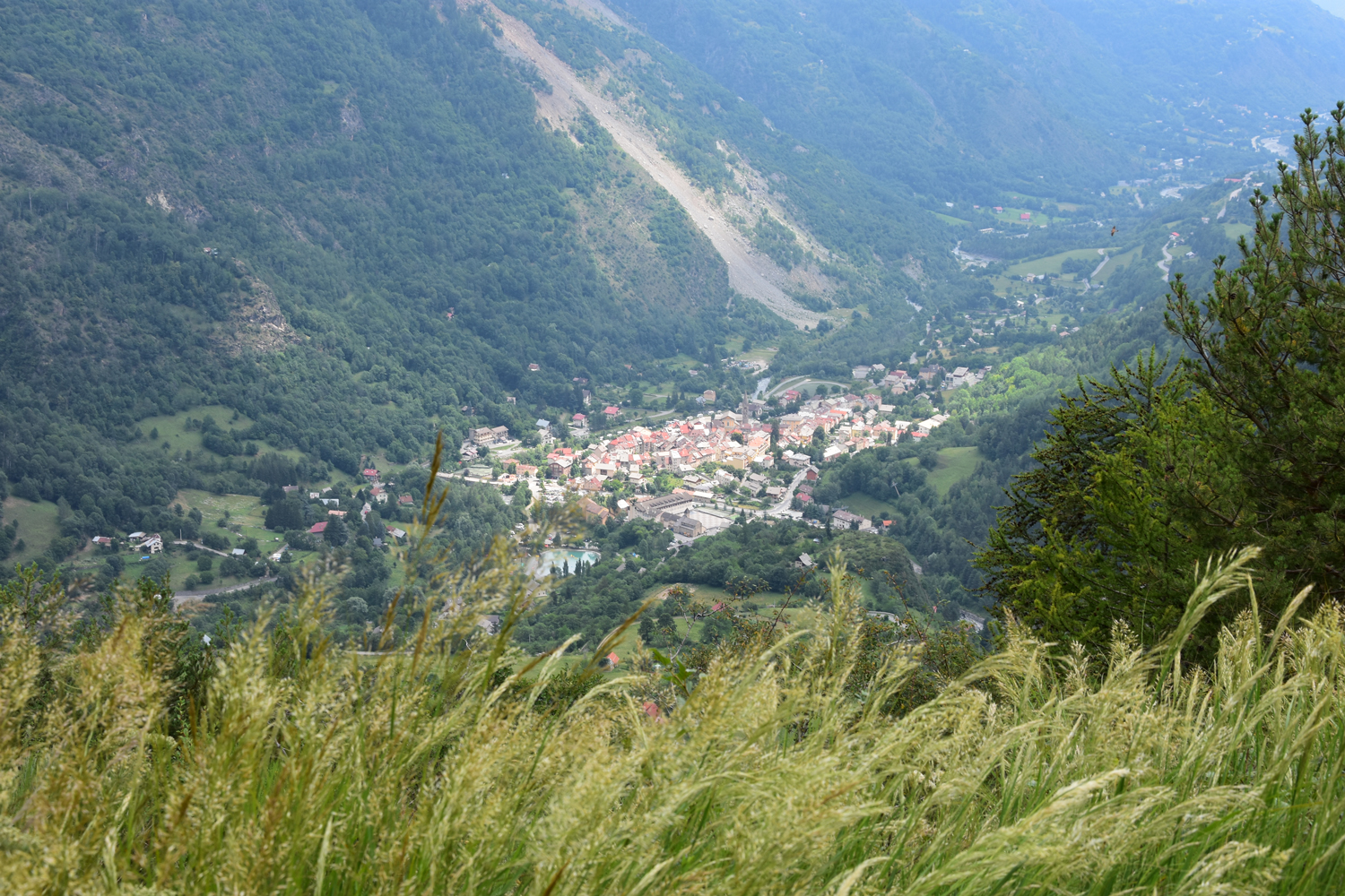 Ein zweiter Aufstieg, ebenfalls auf sehr angenehmem Weg, bringt uns zum Col d'Anelle. Von hier steigen wir ab ins Zentrum des netten Städtchens Saint Étienne. Da wir in einem Hotel in Auron übernachten, wandern wir noch ein wenig weiter – bis zur Abzweigung der Straße nach Auron, die man an einer ausrangierten Seilbahnkabine in der Mitte eines Kreisverkehrs erkennt.
