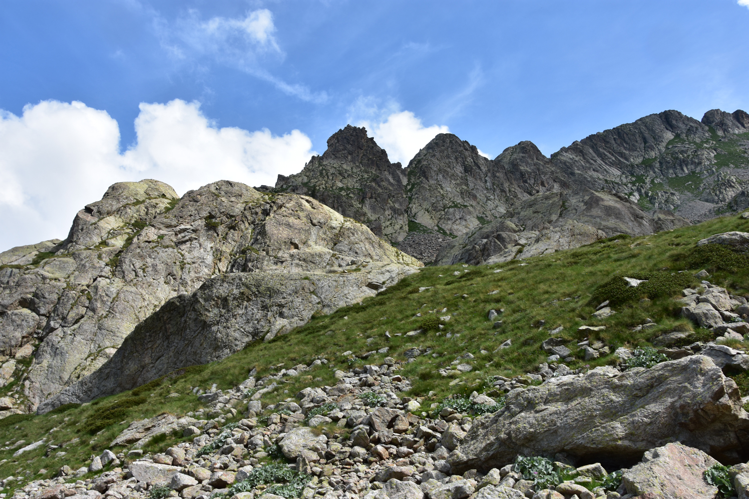 Die heutige GR52-Etappe ist eher noch gemütlicher als die gestrige. Wir starten an der Wallfahrtskirche La Madone de Fenestre, gehen zum Bach hinunter und steigen hoch zum Pas du Mont Colomb, wobei eine kurze Felspassage sogar den Einsatz der Hände verlangt.