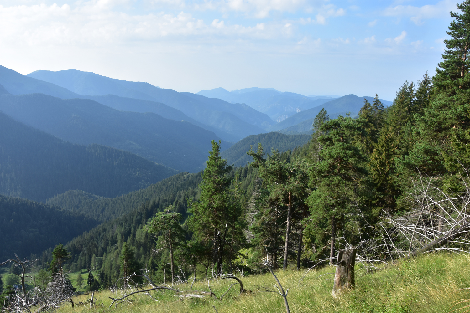 Vorletzter Tag der Alpendurchquerung: Wir haben das Hochgebirge hinter uns gelassen, jetzt ist der große Abstieg angesagt. Die Temperatur ist noch moderat, aber das wird sich im Laufe des Tages ändern.