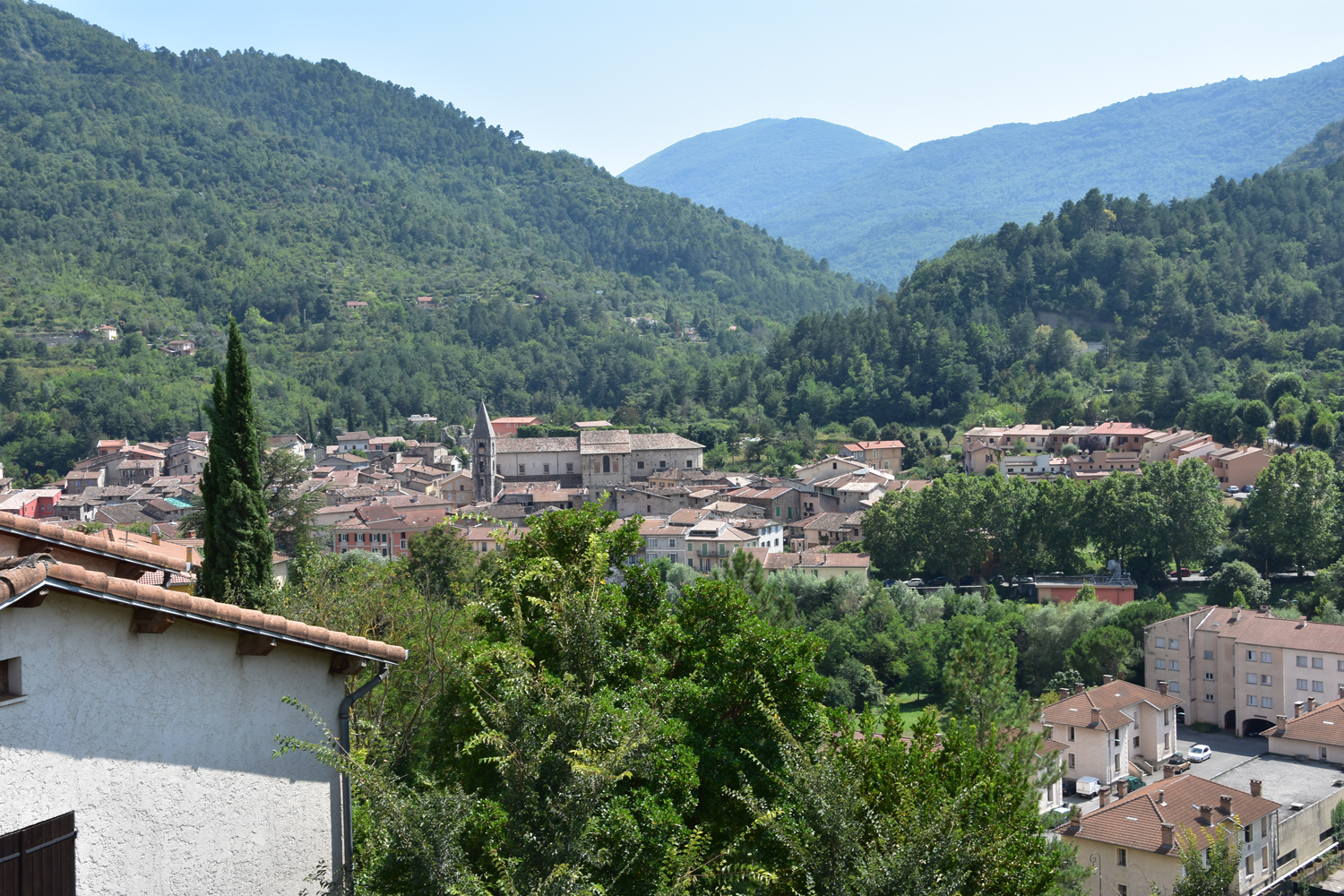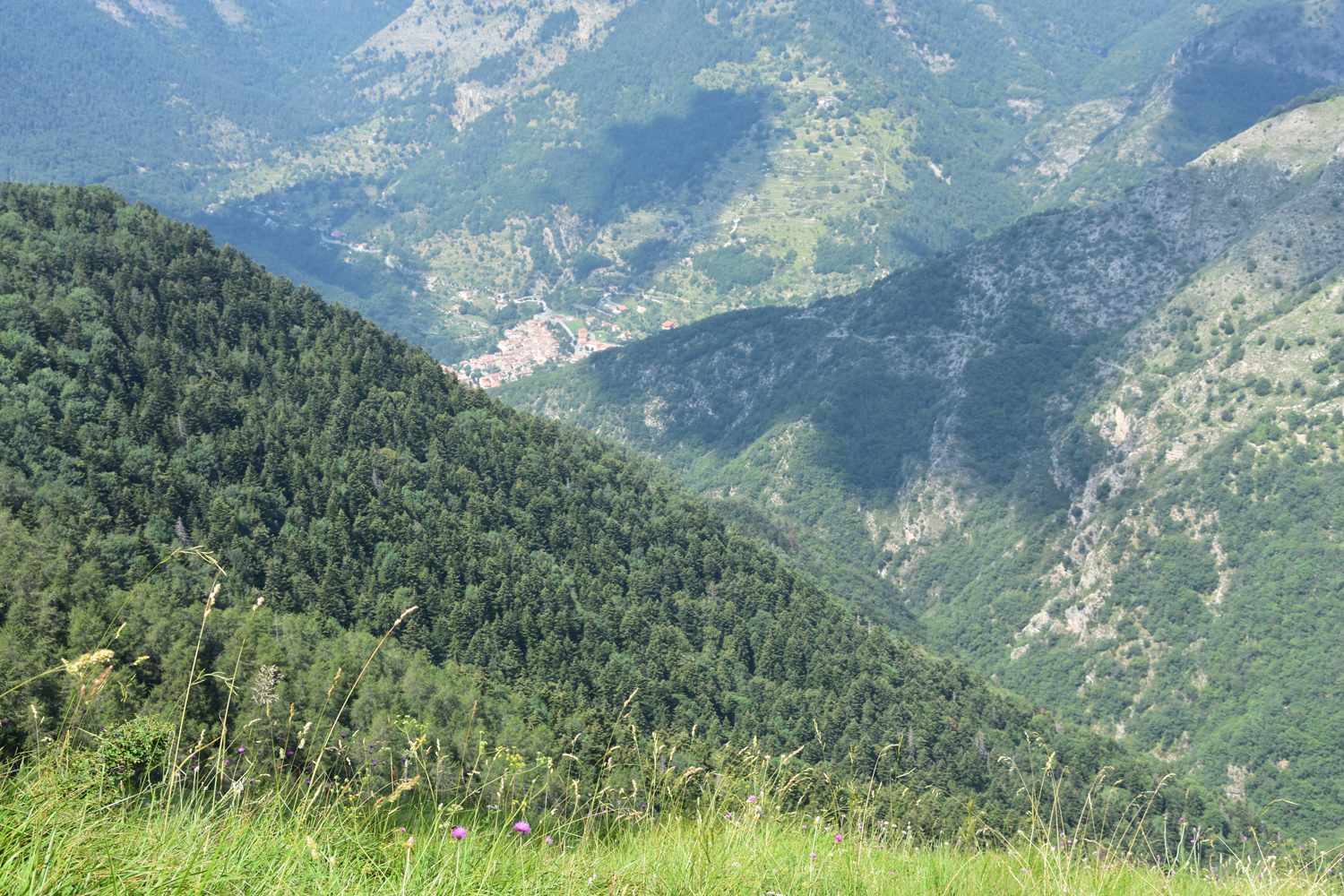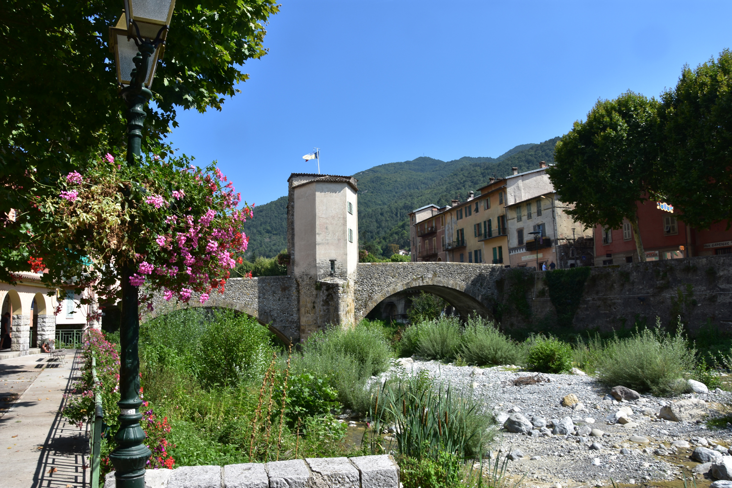 Inzwischen ist es richtig warm geworden, aber wir haben immer noch 1000 Höhenmeter vor uns. Besonders im Schlussabstieg von der Baisse de Figuière nach Sospel brennt die Nachmittagssonne ordentlich herunter. Als wir endlich in dem netten Städtchen ankommen, beträgt die Temperatur etwa 35°C. Klar, dass wir den schattigen Biergarten am Fluss nicht übersehen!
