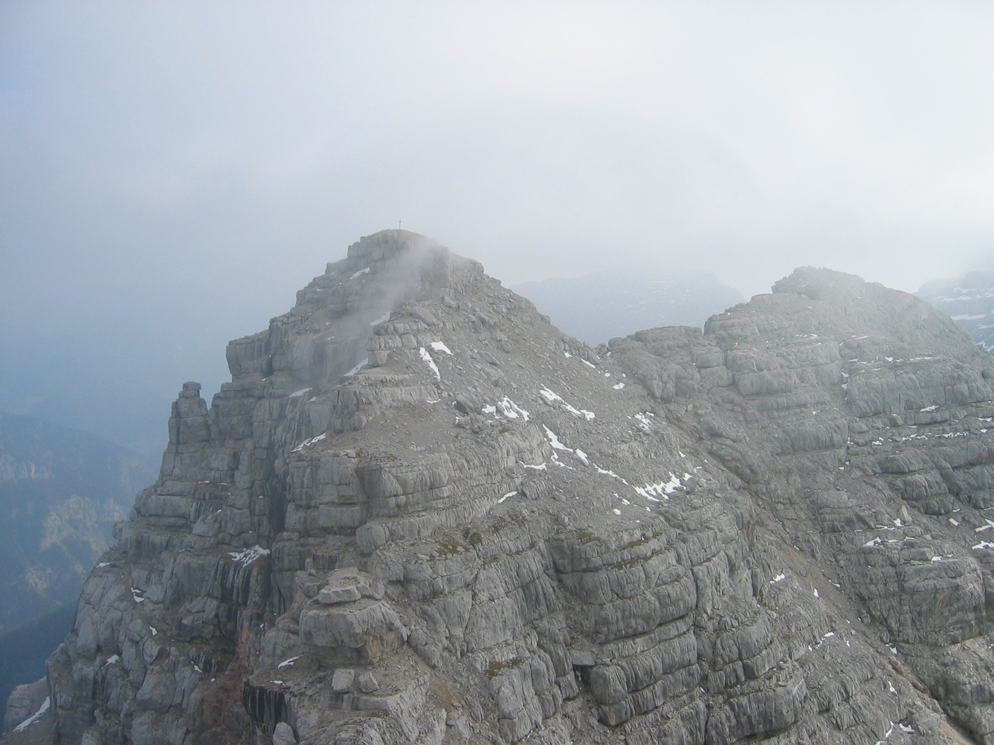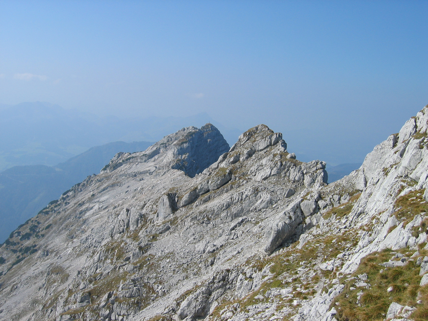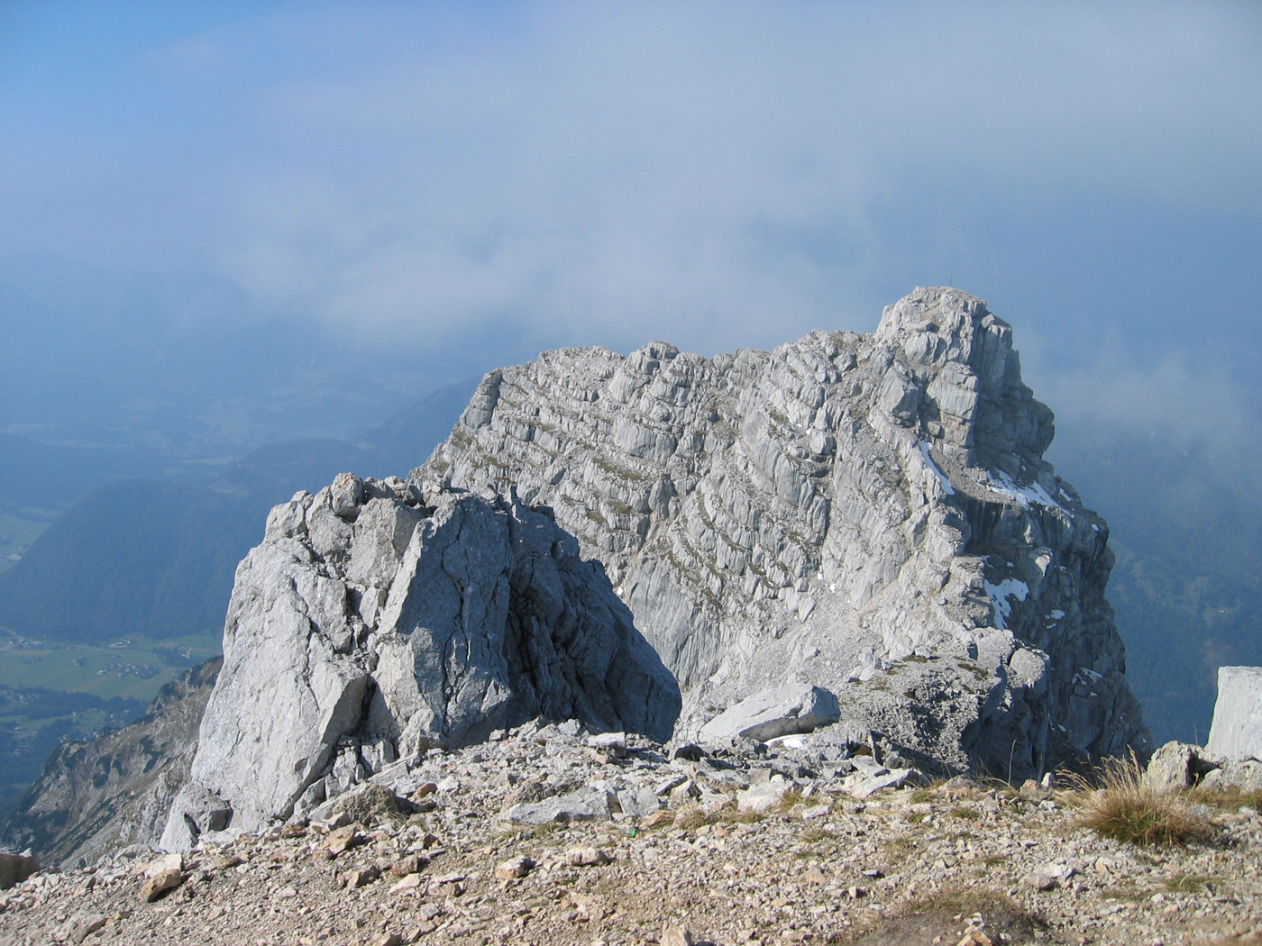 Ohne große Schwierigkeiten steige ich auf das benachbarte Große Rothorn. An der anschließenden Wegverzweigung nehme ich (der Vollständigkeit halber) zuerst den rechten Weg und gelange so in wenigen Minuten zum Rothörndl, das kaum niedriger ist als das zuletzt bestiegene Rothorn. Leider ist die Sicht nicht mehr so gut wie zu Beginn der Tour, aber verlaufen kann man sich bei einer so guten Markierung kaum.