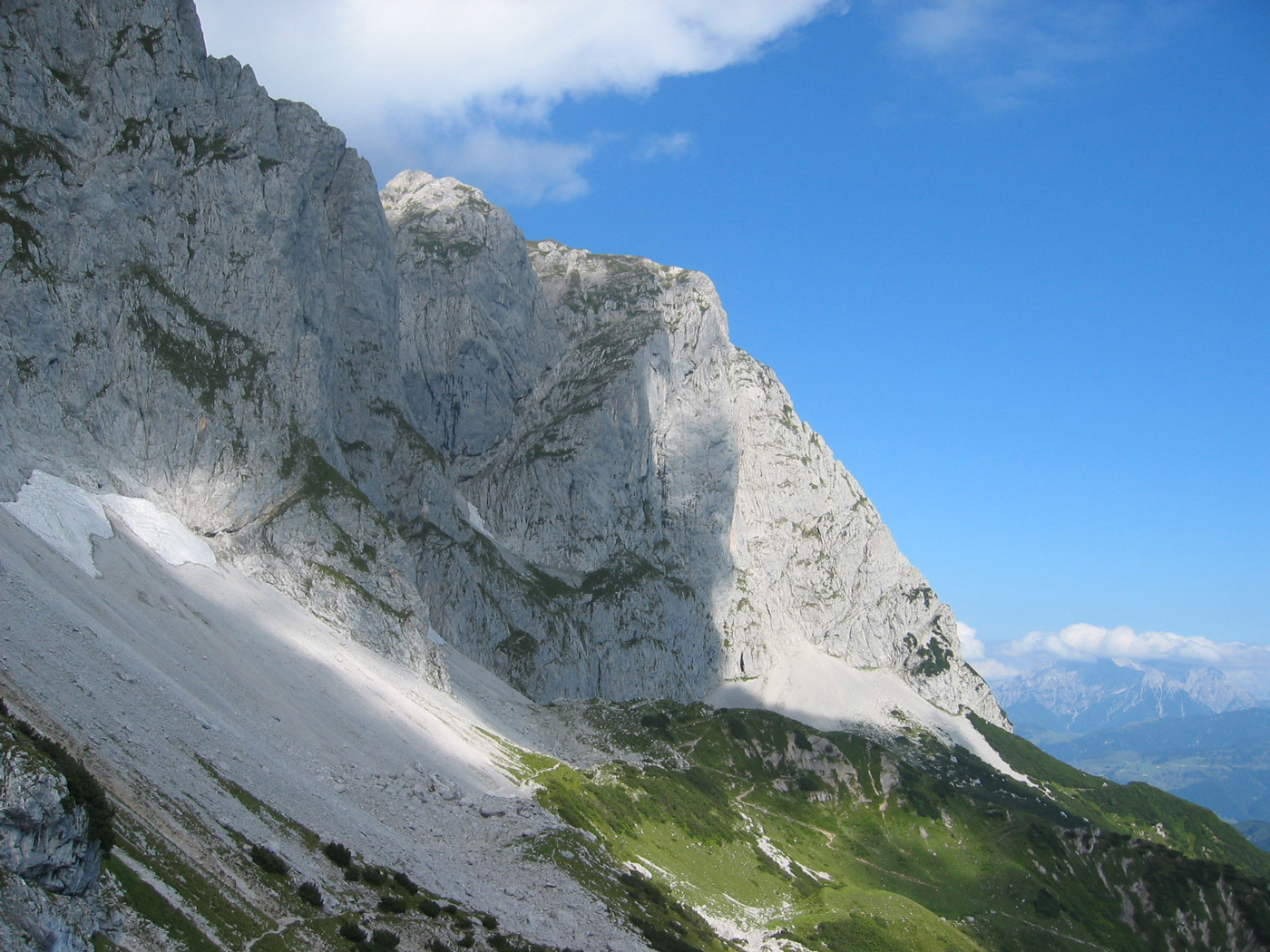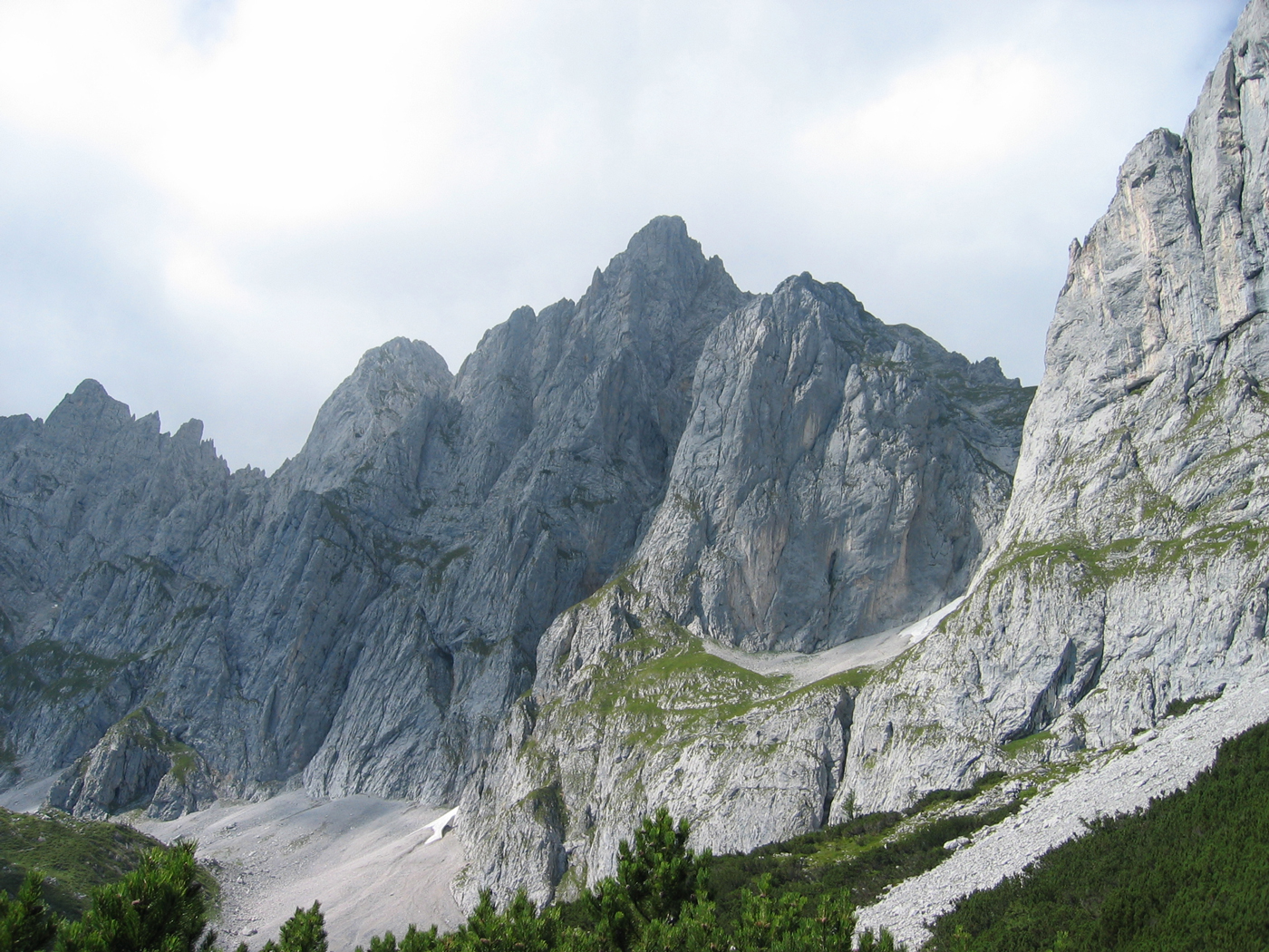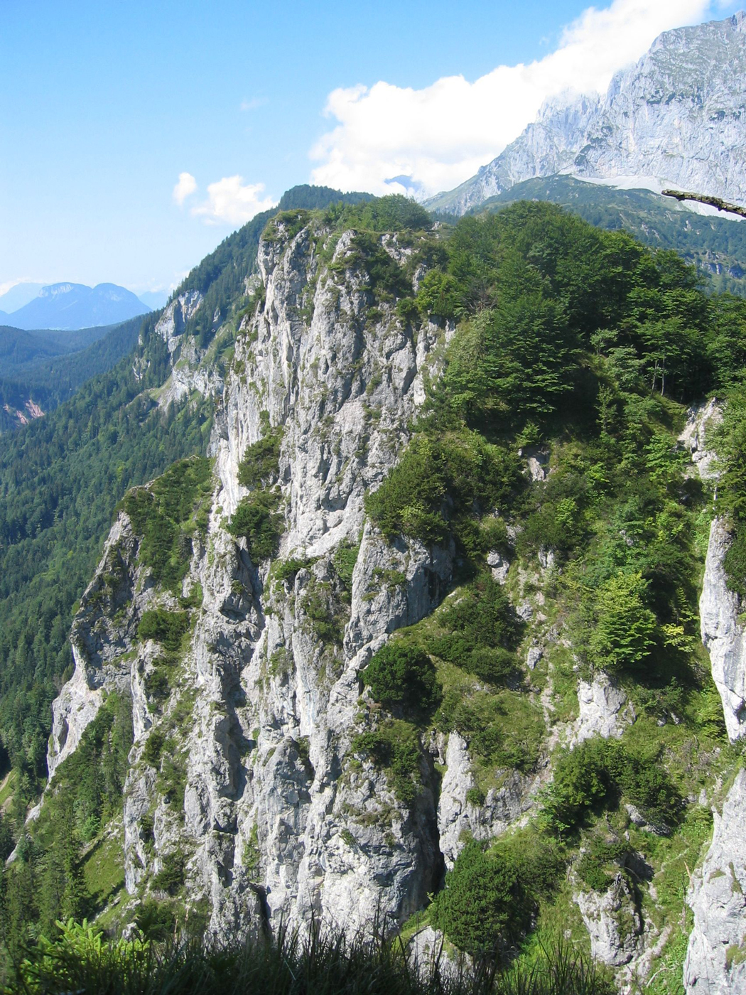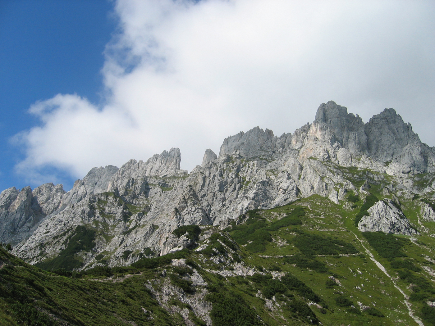 Der Wilde Kaiser gehört auf jeden Fall zu den spektakuläreren Gebirgsgruppen, sonst würde er nicht so heißen. Der wilde Teil dieser Gruppe beginnt allerdings noch nicht in St. Johann. Heute geht es erst einmal über die einfachen Mugel des Vorkaisers. Trotzdem ist es eine nette Wanderung, sobald man den geschäftigen Ort verlassen hat. Auf Waldwegen, teilweise recht steil, steige ich hinauf zum Schatterberg. Danach geht es ziemlich gemütlich über den Gscheuerkopf zur Niederalm. Auch der Weiterweg zum höchsten Punkt der heutigen Etappe, dem Gamskögerl, ist angenehm zu gehen.