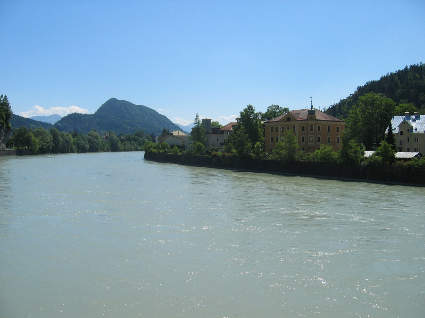 Der nordseitige Abstieg über den stellenweise versicherten Widauersteig sorgt für ein wenig Abwechslung, weist aber keine wirklichen Probleme auf. Im Bereich der Kaindlhütte tauche ich in den Trubel der vielen Seilbahnbenutzer ein. Die restliche Tour über das Brentenjoch verläuft auf breiten Fahrwegen, ist aber noch ziemlich lang. Mit schweren Beinen und viel Durst überquere ich schließlich die Innbrücke in Kufstein. Die Durchquerung des Wilden Kaisers ist geschafft.