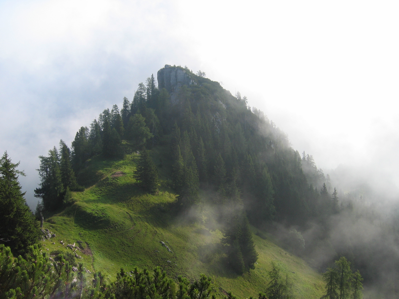 Auch auf dem Weiterweg zu den beiden letzten Gipfeln gibt es viel Aussicht bei mäßiger Anstrengung. Ein kleines Highlight bietet ein spektakulärer Felszacken, von dem ein Gartenzwerg auf die vorbeikommenden Wanderer herunterschaut. Bald ist der höchste Rofangipfel erreicht, der Hochiss. Besonders eindrucksvoll ist hier der Tiefblick in die Nordwand.