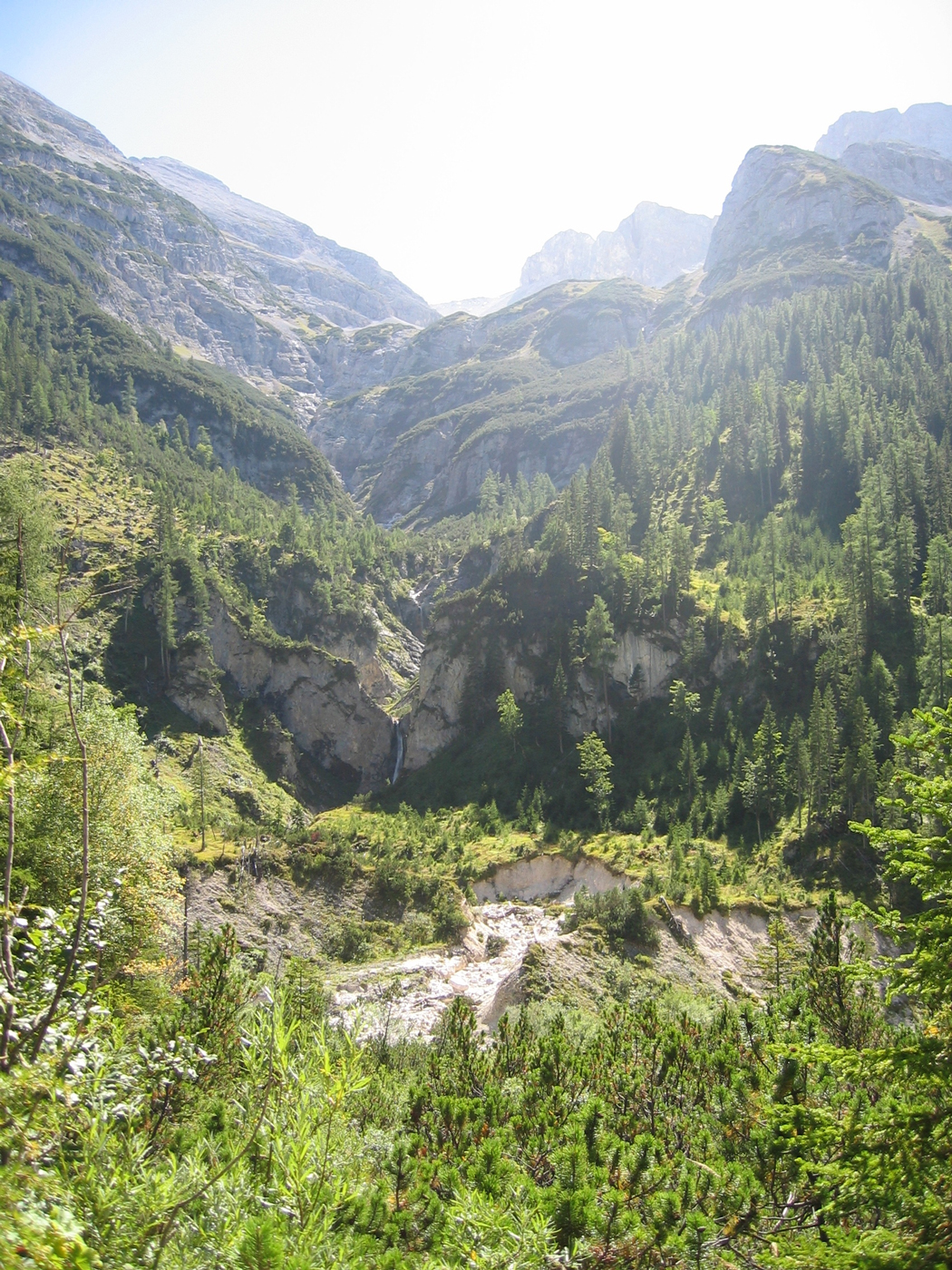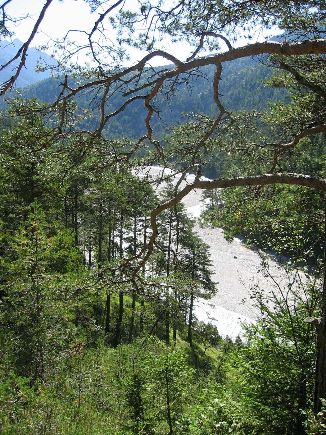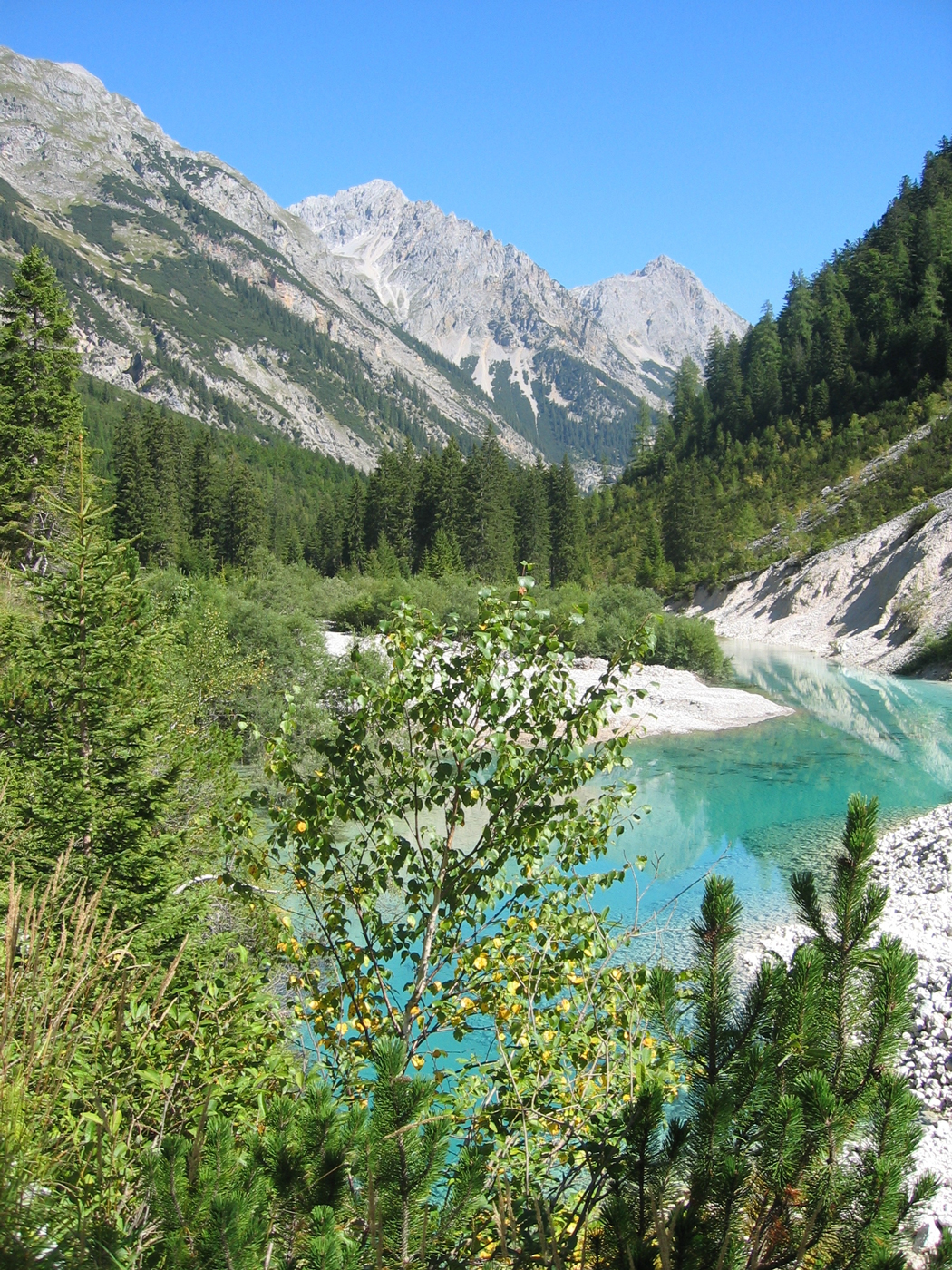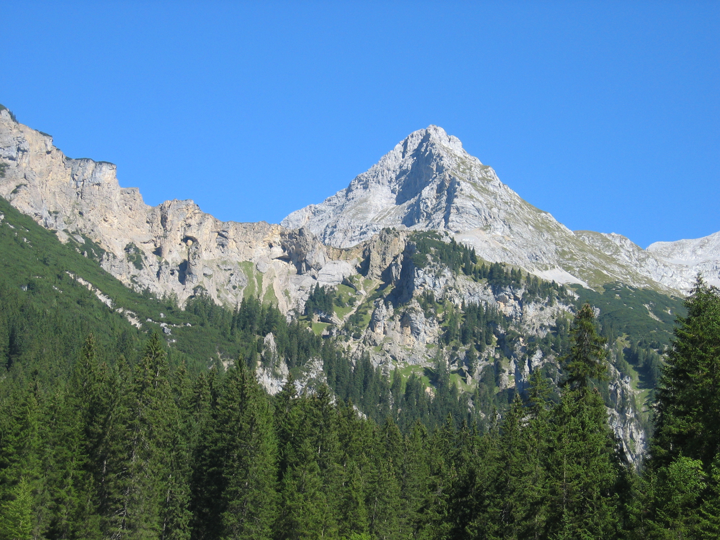 Auf der letzten Tour meiner Weitwanderung in Etappen bin ich bis zum Hochalmsattel gekommen, der knapp oberhalb des Karwendelhauses liegt. Eineinhalb Monate später breche ich bei schönstem Wetter erneut ins Karwendel auf, um in einer Viertagestour den westlichen Teil dieser reizvollen Gebirgsgruppe zu durchwandern. Von Scharnitz marschiere ich durch das Karwendeltal, immer wieder überholt von Mountainbikefahrern. Anscheinend bin ich heute der einzige, der zu Fuß den langen Weg zum Karwendelhaus zurücklegt. Trotzdem: Es ist eine wunderbare Wanderung, und es gibt viel zu sehen.