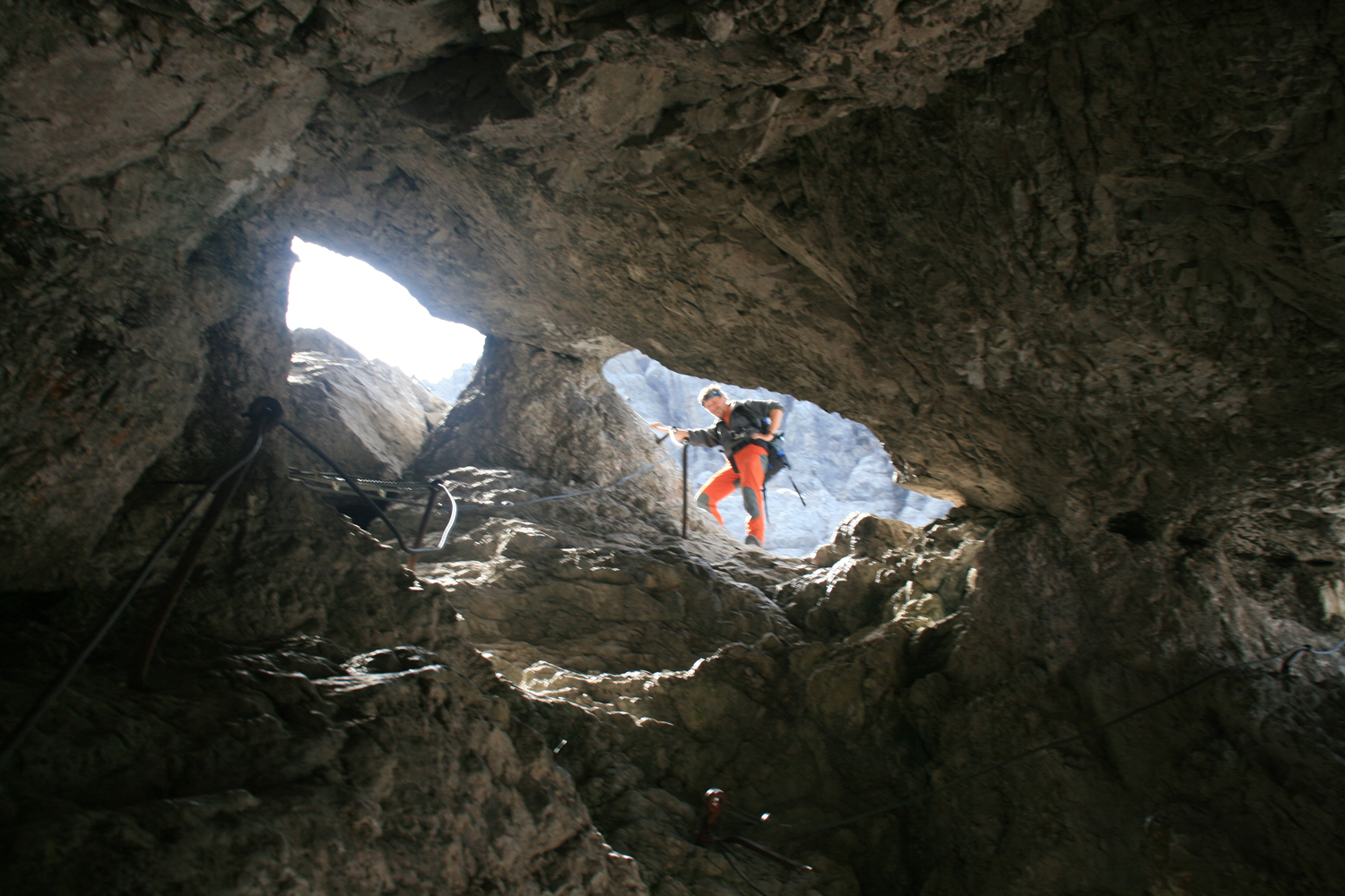 Die stellenweise klettersteigartige Abstiegsroute zur Wiener Neustätter Hütte, auch als "Stopselzieher" bekannt, ist im Vergleich zum Gipfelchaos die reinste Erholung, auch wenn sich das Wetter allmählich verschlechtert. Nach der Einkehr in der urigen, wenig besuchten Hütte haben wir immer noch einen Abstieg von mehr als 1100 Höhenmetern zu absolvieren, bis wir in Ehrwald einlaufen. Zum Abschied gibt es noch ein wenig Blitz und Donner, aber bei der Ankunft am Bahnhof scheint wieder die Sonne.