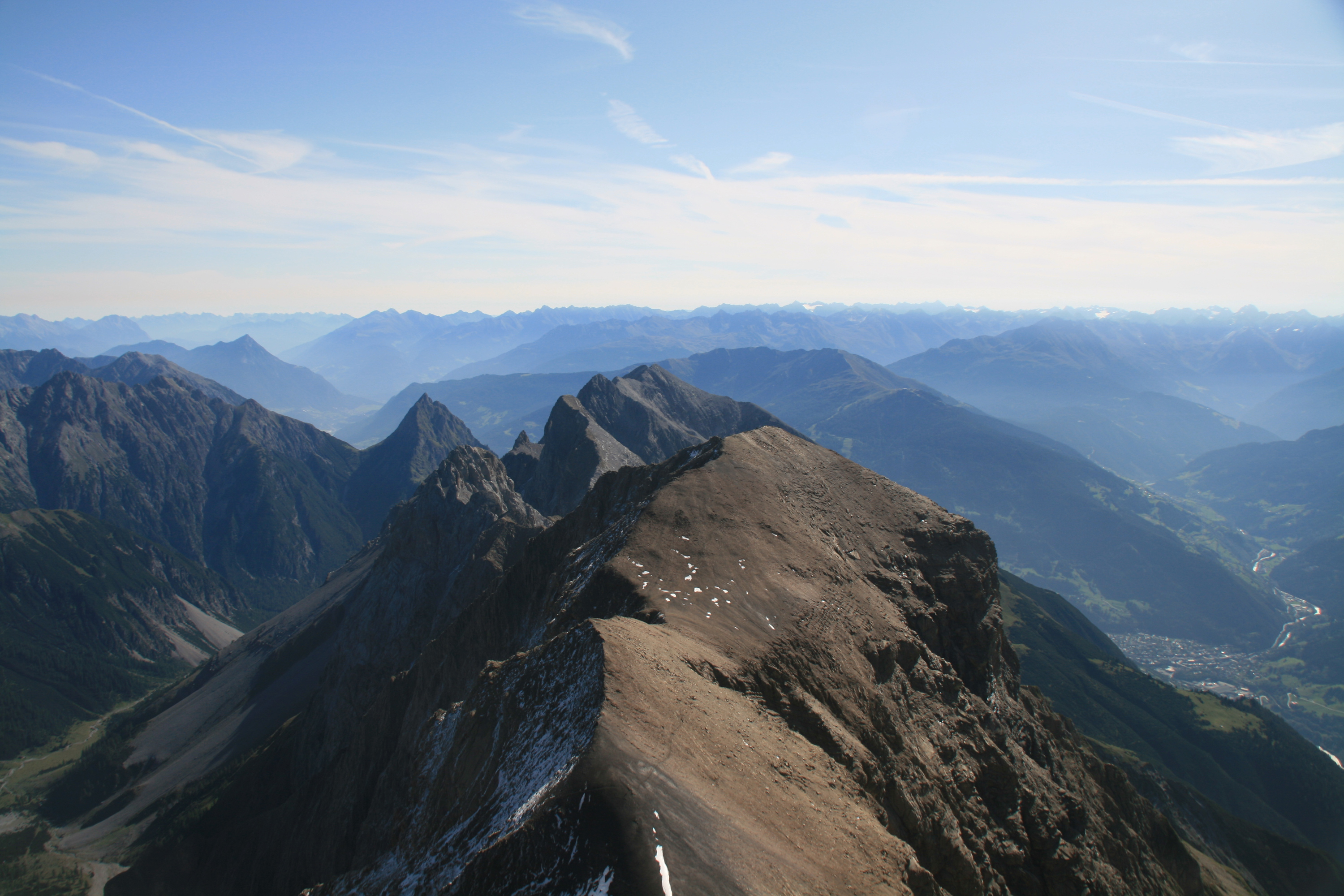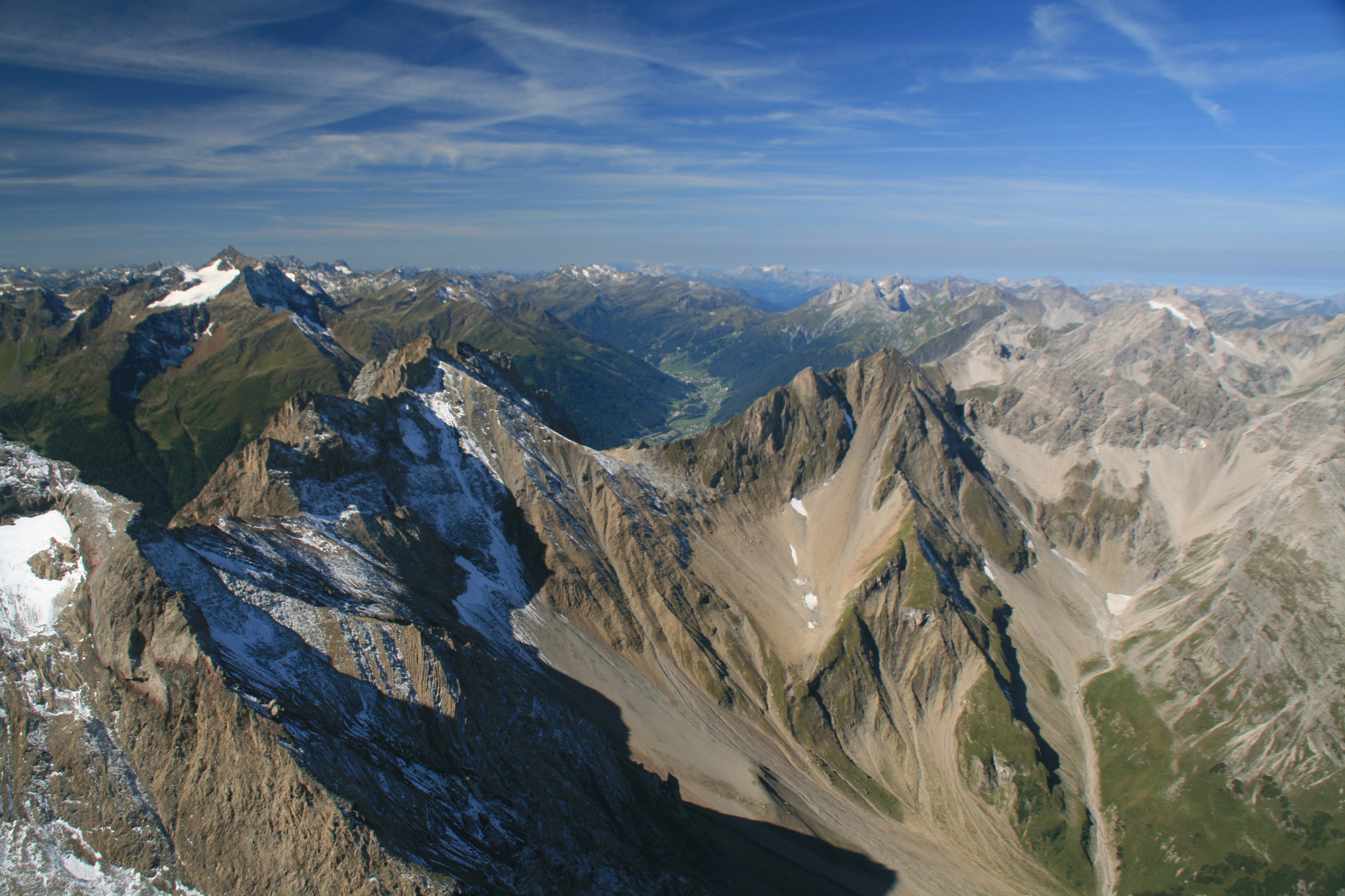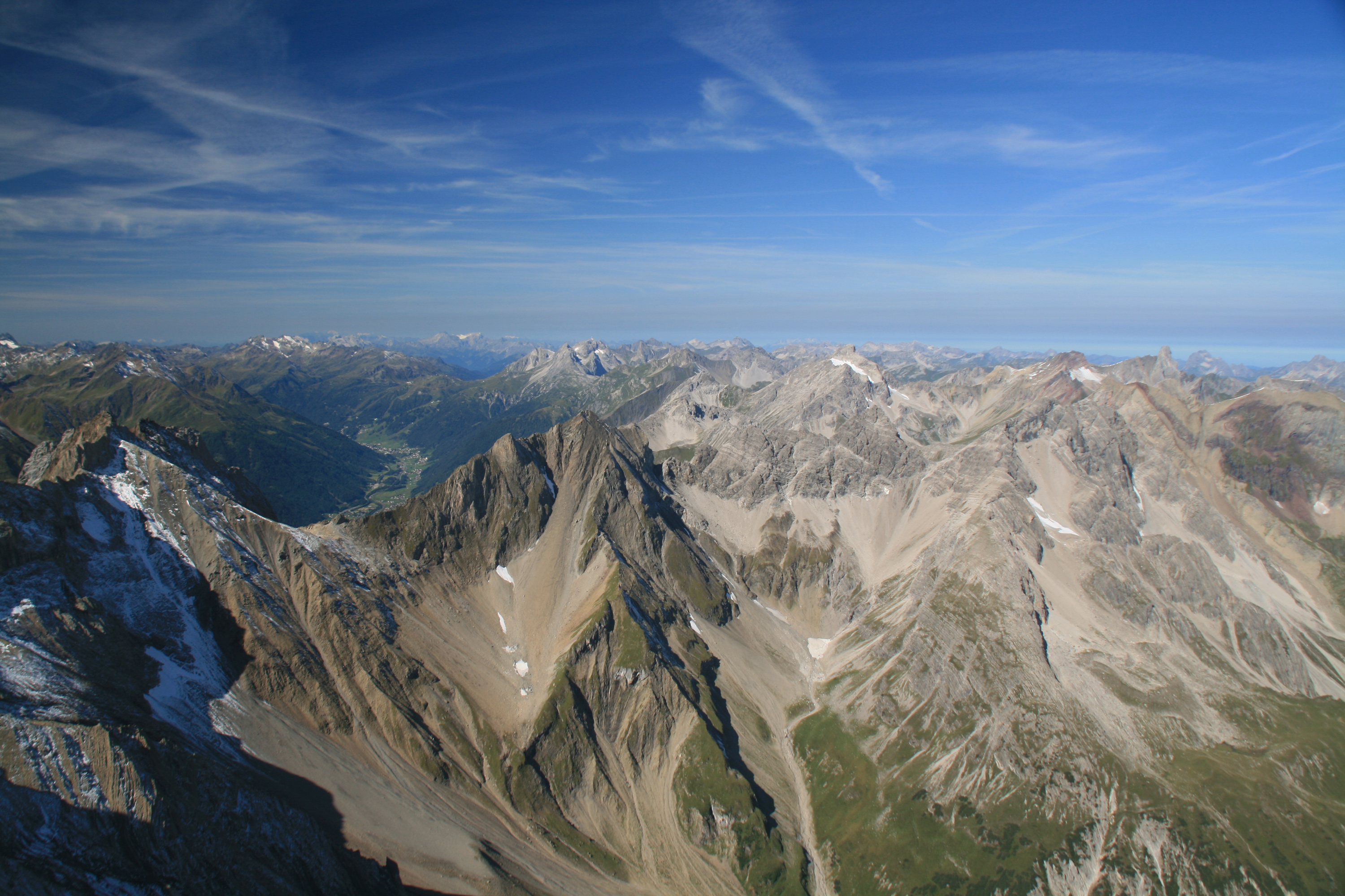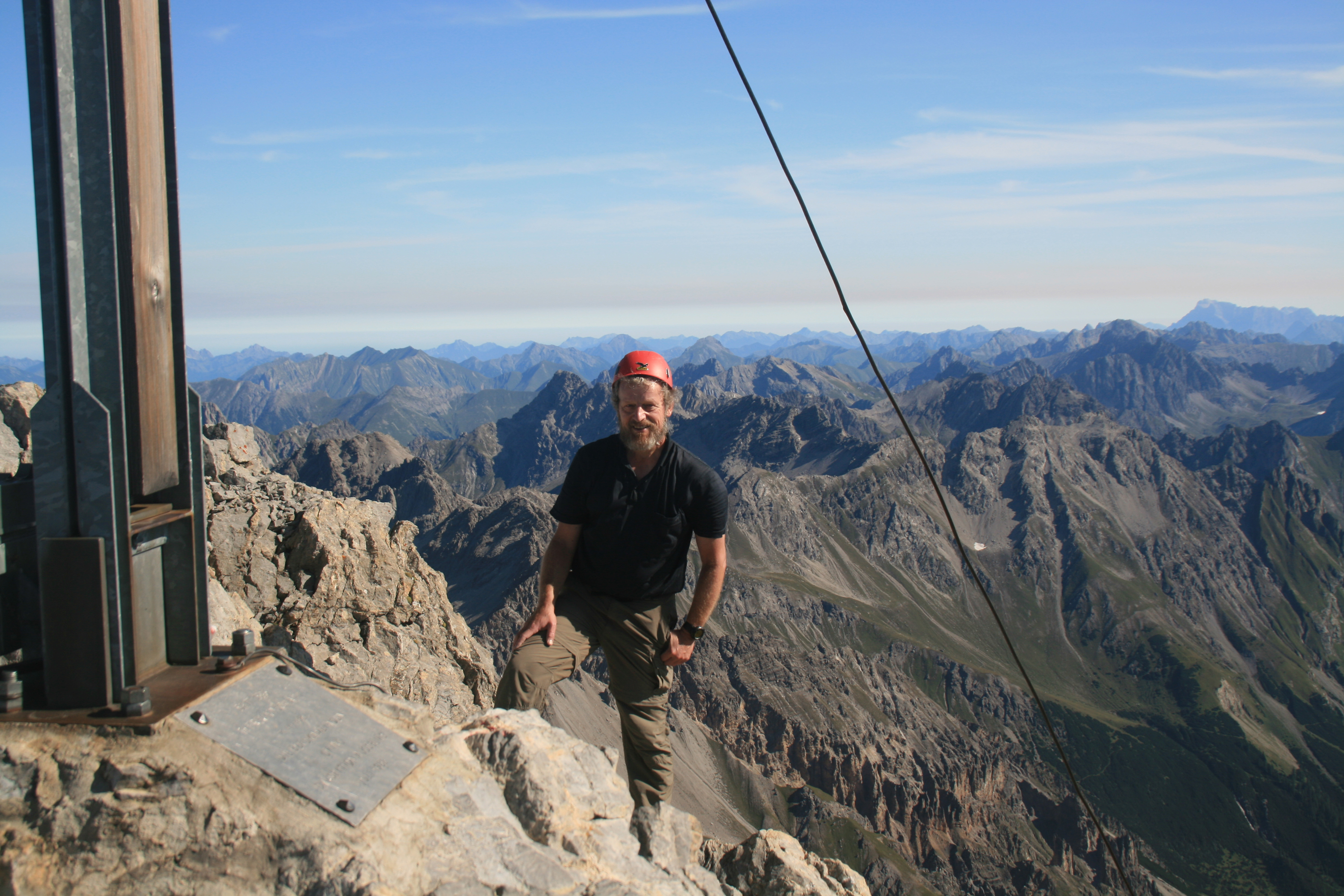 Die Parseierspitze bietet bei so schönem Wetter eine tolle Rundumsicht, insbesondere auf Allgäuer, Lechtaler, Ötztaler und Ferwall. Nach der Gipfelpause steige ich mit größter Vorsicht wieder ab zum Wandfuß.
