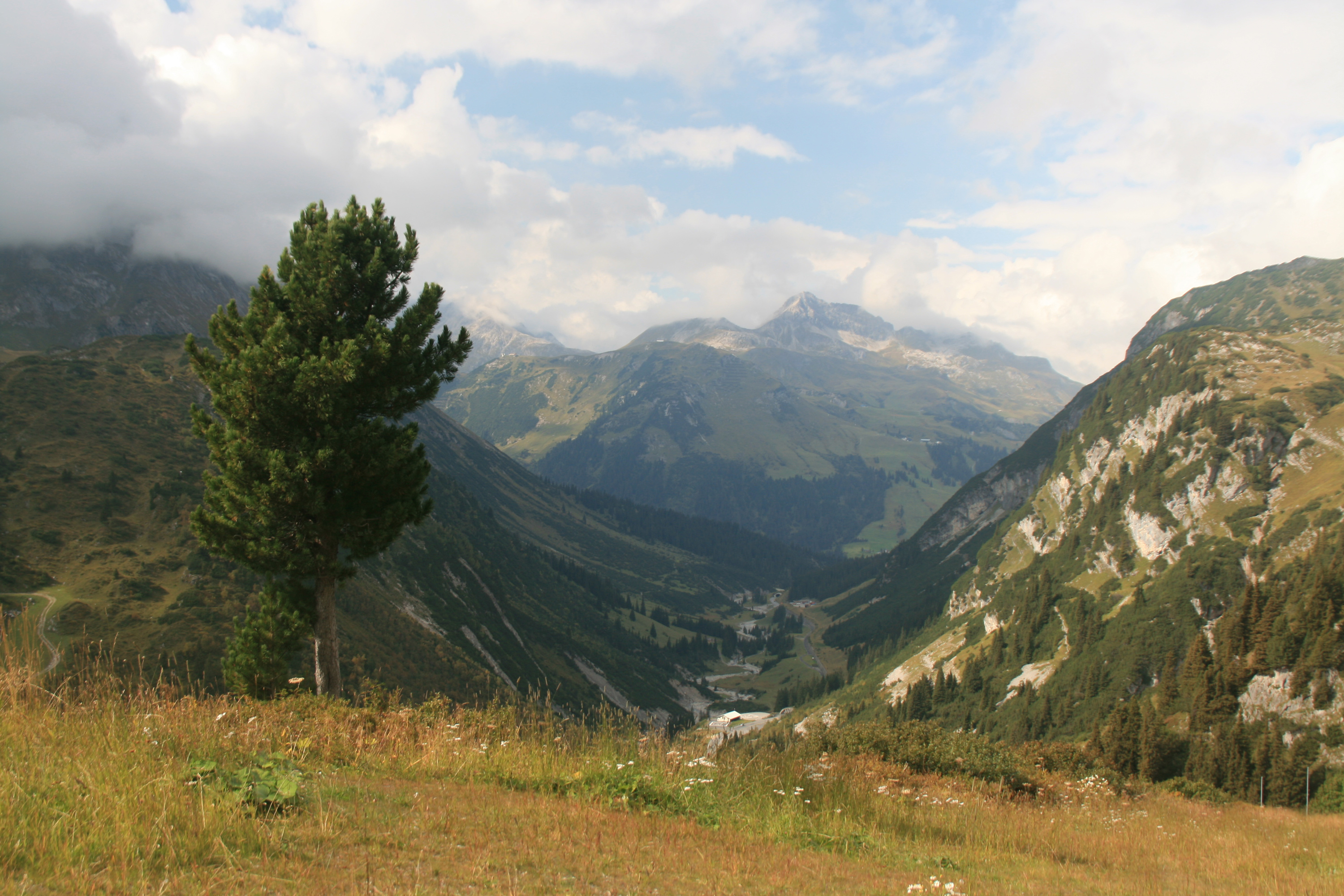 Rund 600 Höhenmeter Abstieg, zuerst nördlich, später südlich des Pazüelbachs, sind noch zu absolvieren, dann ist das Hoteldorf Zürs erreicht, das jetzt im Spätsommer wie ausgestorben ist. Die Lechtaler Alpen liegen hinter mir. Der Bus bringt mich zurück nach Steeg, wo ich gestern früh gestartet bin.