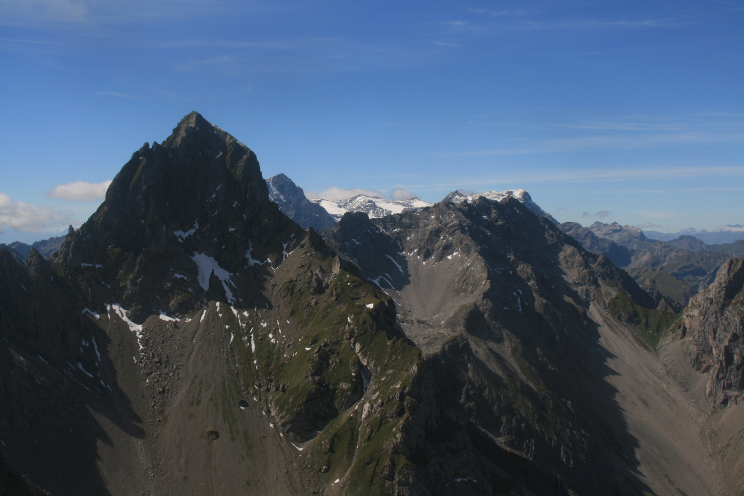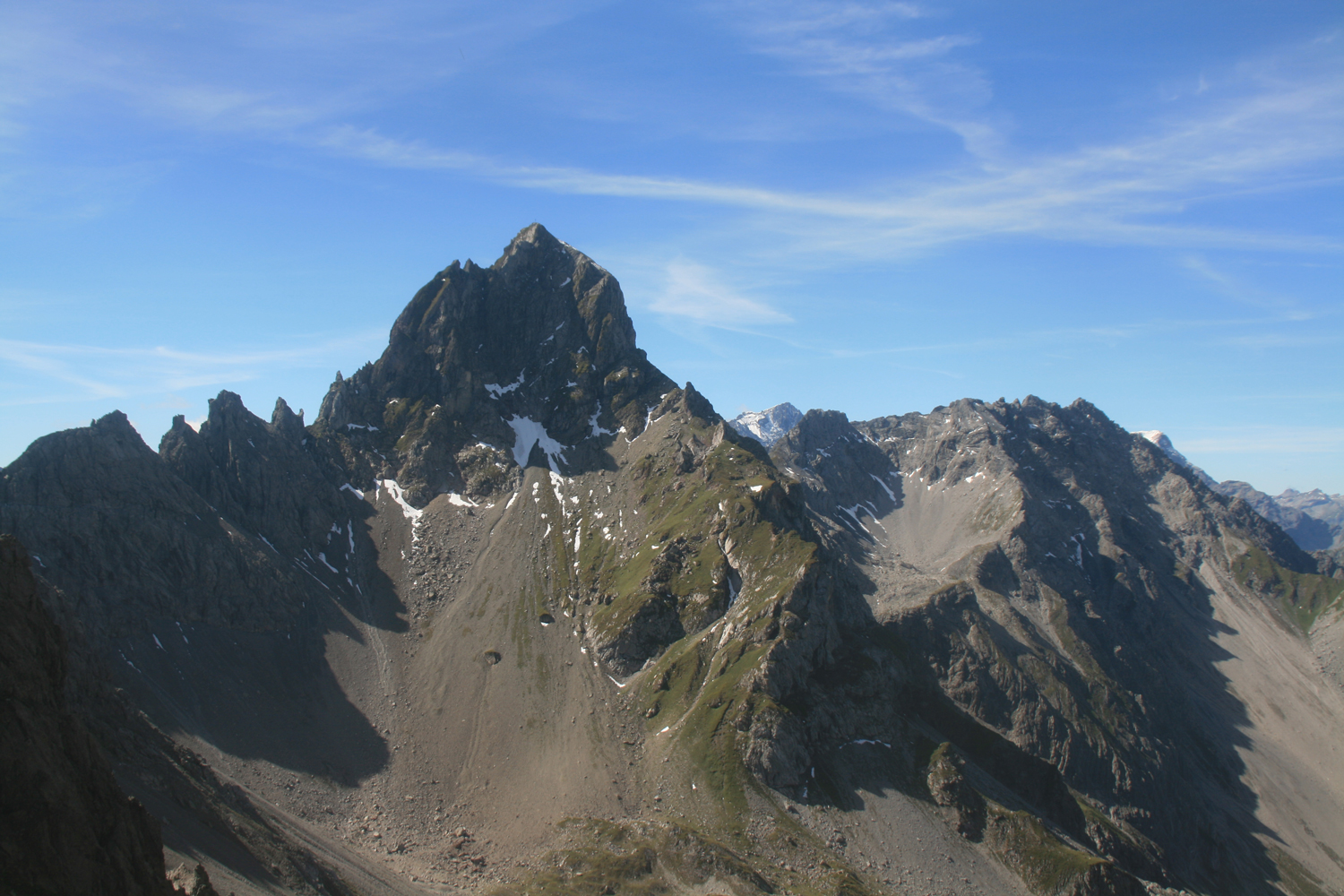 Auf meiner langen Ost-West-Wanderung bin ich inzwischen im Rätikon angekommen, einer Gebirgsgruppe, die mit bisher völlig unbekannt war. Ich habe die Absicht, diese Gegend besser kennenzulernen. Diese Wochenendtour soll der Einstieg dazu sein. Startpunkt ist Brand, ein Dorf zwischen Bludenz und dem Lünersee. Auf der rechten Seite des Alvierbachs marschiere ich abwärts bis zum Stachelhof, wo der einfache Weg zur Sarotlahütte abzweigt. Nach etwa 650 Höhenmetern mit viel Wald ist die Hütte erreicht. Ich trinke einen Kaffee, bevor ich zur Gipfeltour aufbreche.