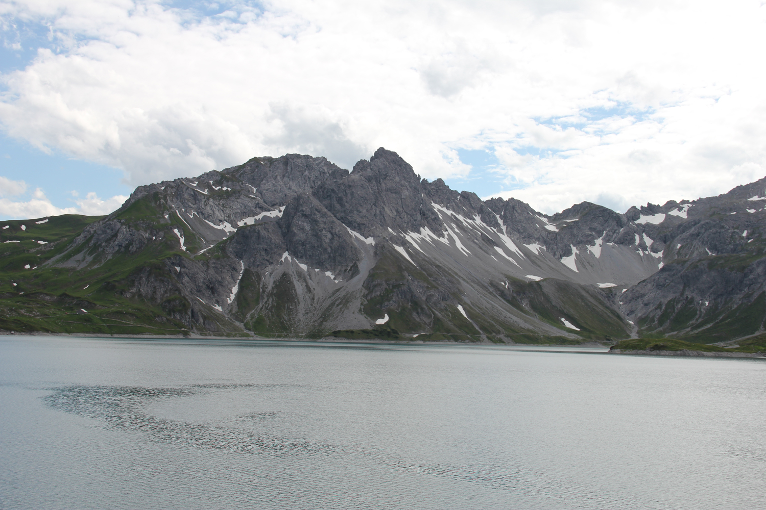 Weil der Abend so wunderbar ist, breche ich nach dem Abendessen noch zu einem Spaziergang um den See auf, und zwar im Gegenuhrzeigersinn. Bald wird sich herausstellen, dass diese an sich völlig harmlose Unternehmung heute mit Problemen verbunden ist. Kurz nach dem Aufbruch bemerke ich, dass am südwestlichen Horizont schwarze Wolken aufziehen. Ich bin noch nicht beunruhigt, aber das Wetter verschlechtert sich von Minute zu Minute. Obwohl ich keine Regensachen dabei habe, gehe ich (mit höherem Tempo) weiter; auch die ersten Blitze halten mich nicht von meinem Vorhaben ab. Als ich den See zu zwei Dritteln umrundet habe, gießt es wie aus Kübeln, und die Blitzgefahr ist jetzt wirklich nicht mehr zu vernachlässigen. Reichlich spät kommt mir die Erkenntnis, eine Riesendummheit begangen zu haben. Die restliche Strecke zur Hütte wäre zwar nicht mehr lang, aber ich müsste kurz vor dem Ziel über die Staumauer marschieren und wäre damit ein schwer zu verfehlendes Ziel für Zeus und seine Blitze. Vor drei Stunden habe ich ein Warnschild gelesen, das genau auf diese Gefahr hinweist. Es bleibt mir nichts anderes übrig als umzukehren. Völlig durchnässt, aber wenigstens nicht vom Blitz getroffen, erreiche ich schließlich die rettende Hütte.
