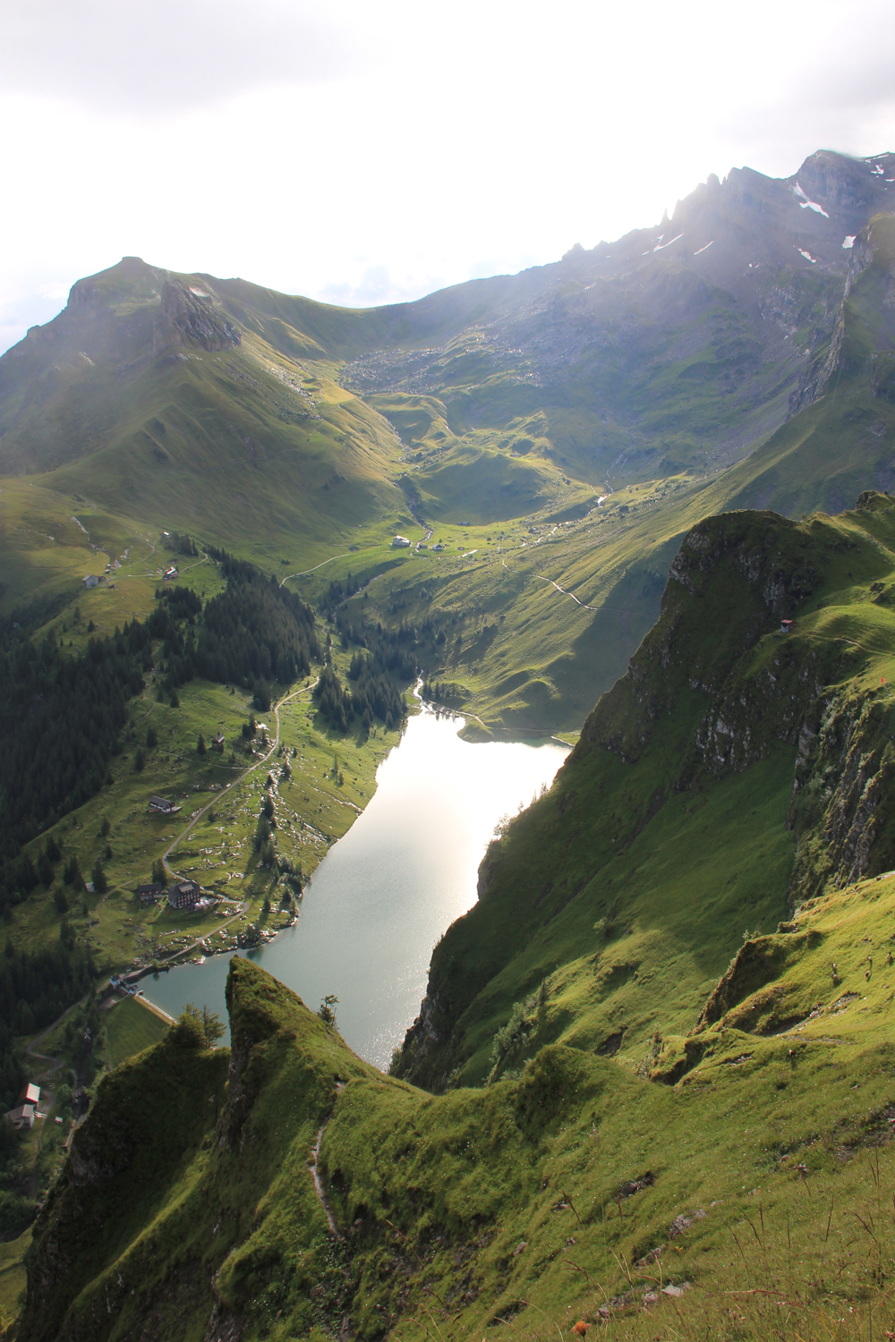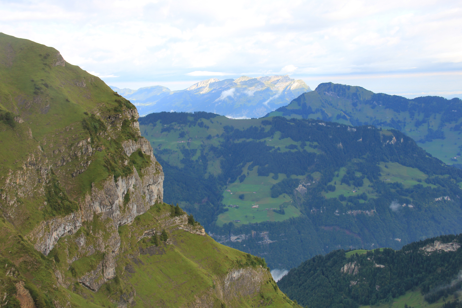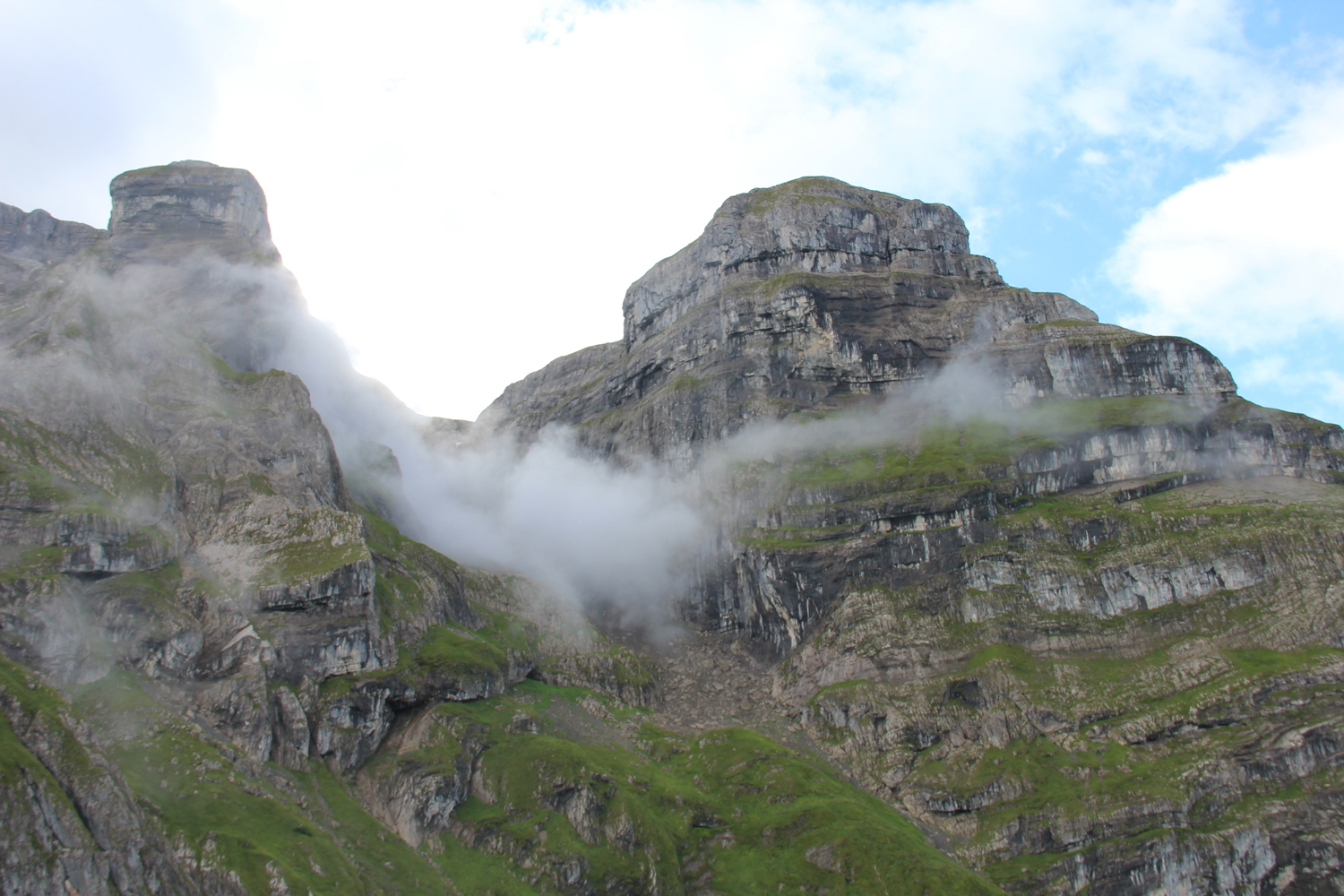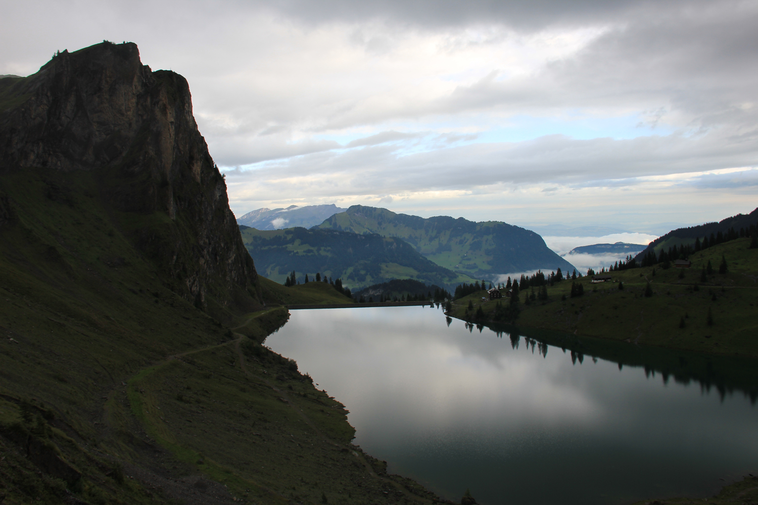 Auf der anderen Seite des Sattels geht es hinunter zur Walenalp, bevor der Weg bei der Querung unter den Walenstöcken wieder etwas Höhe gewinnt. Über einen weiteren Sattel (Rosenbold) wandere ich fast waagrecht hinüber zur Brunnihütte. Vorbei an Rigidalstafel und Ristis, steige ich ab nach Engelberg, das mich sogar mit ein wenig Sonnenschein begrüßt.