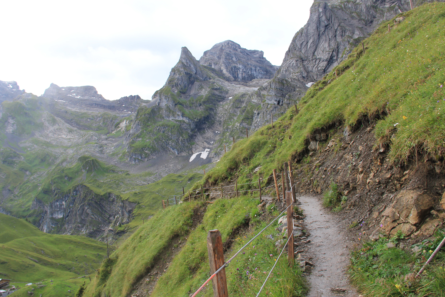 Der Weg quert mit wenig Höhenverlust die Hänge oberhalb des Bannalpsees, bevor er über die Alpe Oberfeld zum Walegg ansteigt. In diesem Bereich sind die Tiefblicke zum See besonders reizvoll; der Weg ist hier ein wenig ausgesetzt, aber nach meiner Einschätzung gerade noch im T2-Bereich.