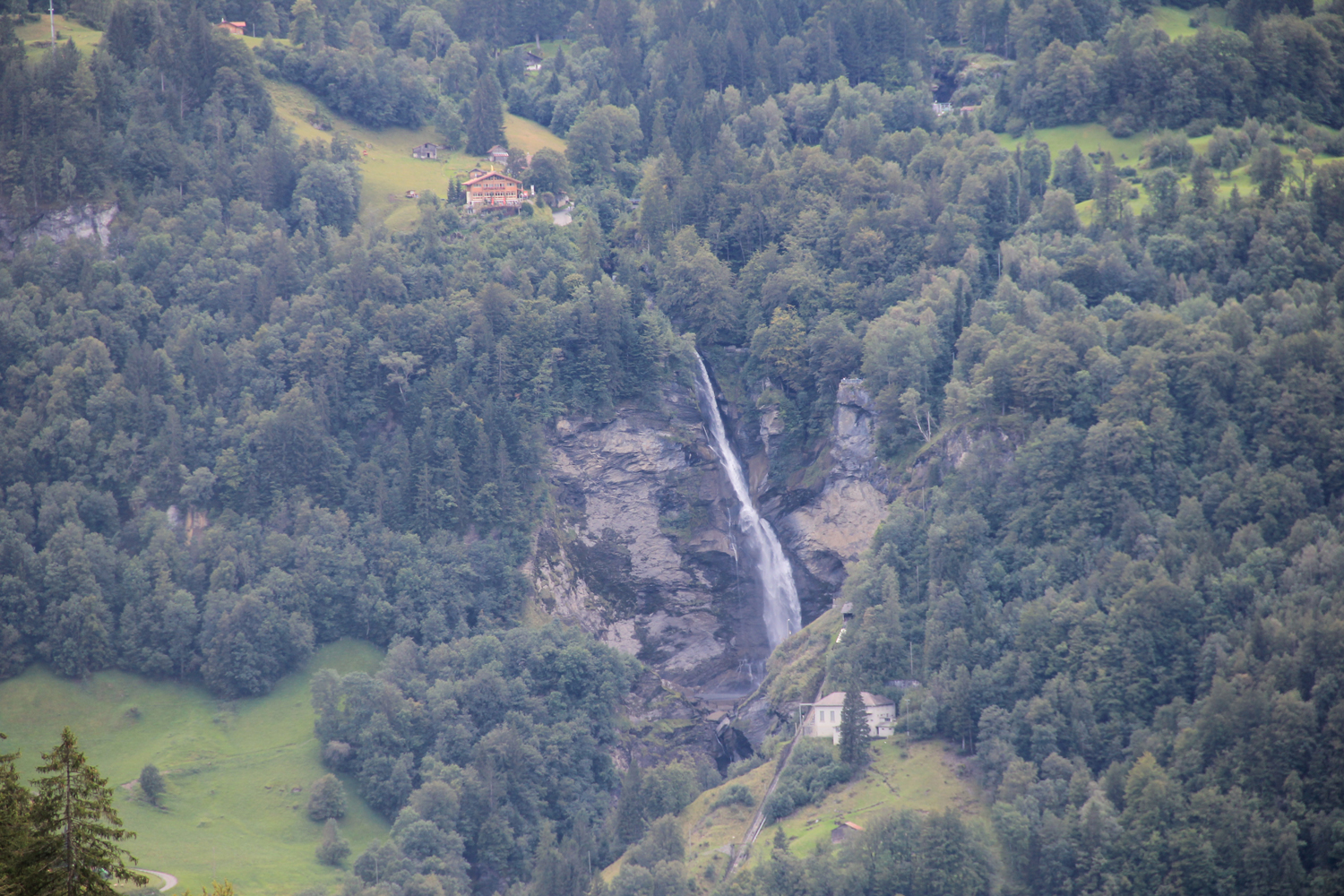 Der Abstieg verläuft auf einfachen Almwegen, zieht sich aber mit über 1600 Höhenmetern noch ziemlich in die Länge. Im letzten Teil, von Reuti nach Meiringen, sehe ich vor mir (auf der gegenüberliegenden Seite der Aare) den bekannten Reichenbachfall, wo Sherlock Holmes zusammen mit seinem Widersacher Moriarty ums Leben kam, wenn auch nur vorläufig.