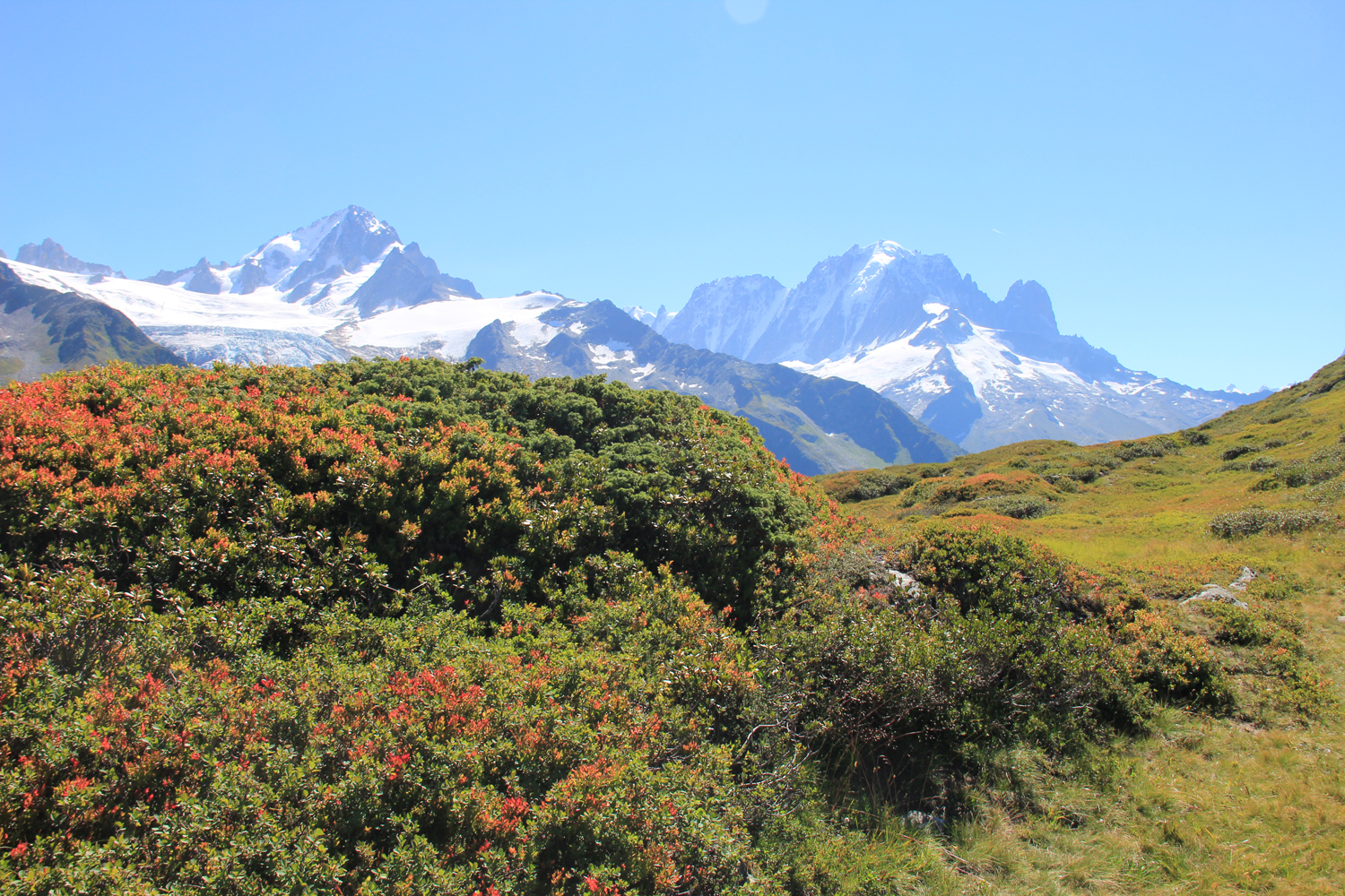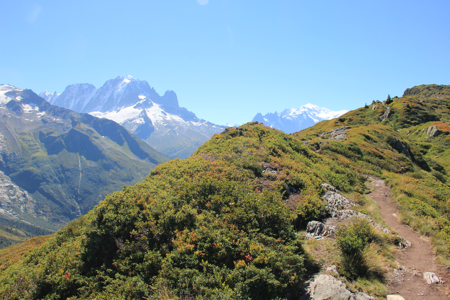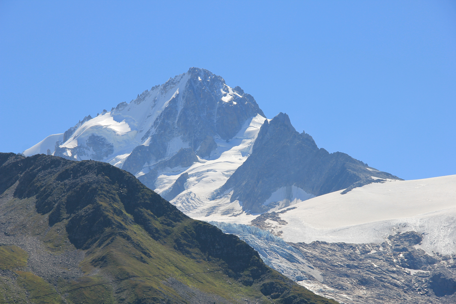Auf einem sehr einfachen Weg quere ich mit etwas Höhenverlust hinüber zum Col des Posettes. Von hier steige ich auf einem aussichtsreichen Pfad hinauf zur Aiguillette des Posettes, die ich schon von einer früheren Tour kennne. Der Gipfel ist ein wunderbarer Platz, um sich in die Sonne zu legen und das atemberaubende Panorama zu genießen.