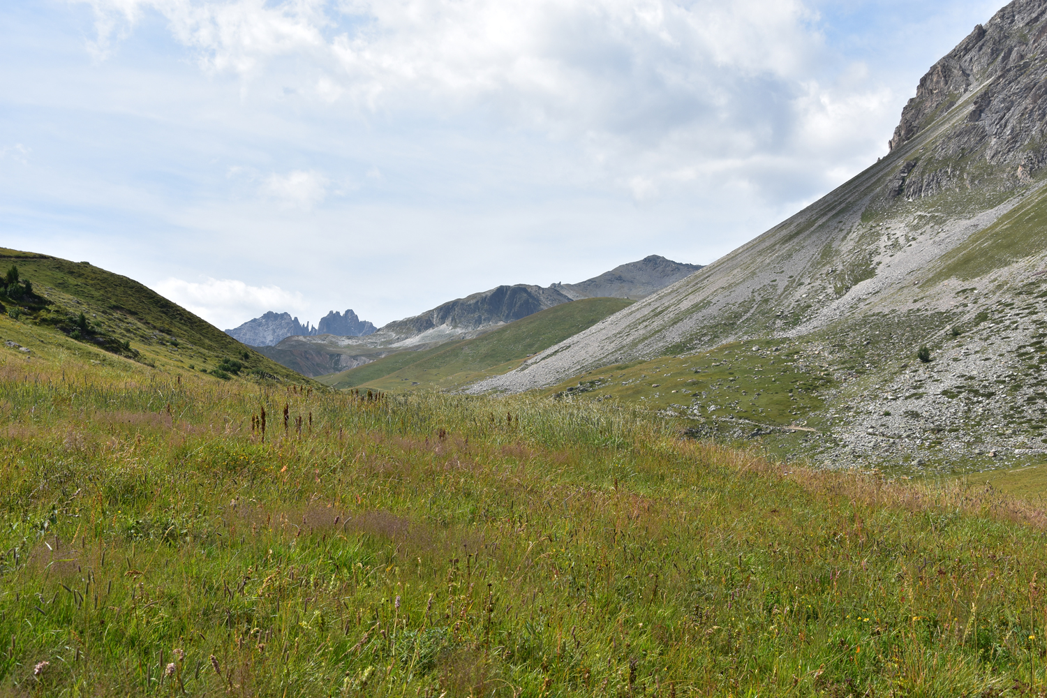 Die heutige Etappe ist vielleicht nicht die interessanteste, hat aber ordentlich Höhenmeter. Kurz nach dem Start am Bahnhof Modane beginnt ein ziemlich steiler Aufstieg, fast immer im Wald und zunächst weitgehend ohne Aussicht. Erst nach gut zwei Stunden kommt man in offenes Gelände. Der Weg führt hier über schöne Bergwiesen zum Col Vallée Étroite. Hier ist es nicht mehr weit zu meinem Tagesziel, dem Refuge du Thabor. Leichtsinnigerweise habe ich nicht reserviert, nicht zuletzt wegen fehlender Französischkenntnisse. Zuerst wird mir vorgeschlagen, zwei Stunden zum Refuge des Marches weiterzugehen, was jedoch überhaupt nicht zu meinen Gipfelplänen für morgen passen würde. Schließlich bekomme ich einen Platz in einem der Zelte, die vor der Hütte aufgestellt sind.