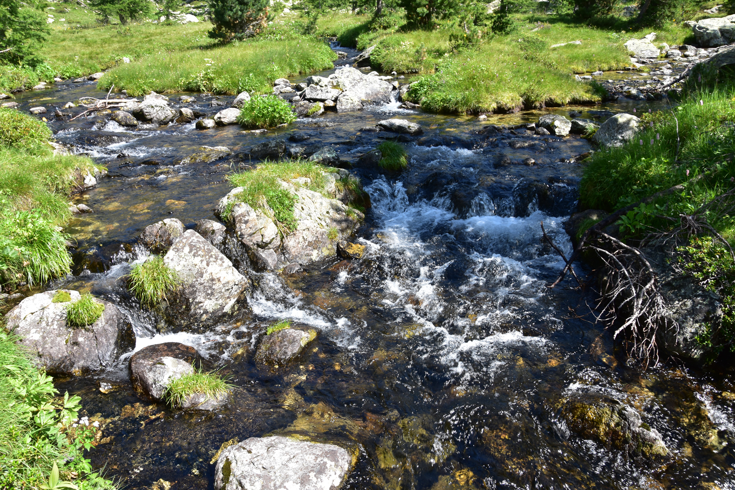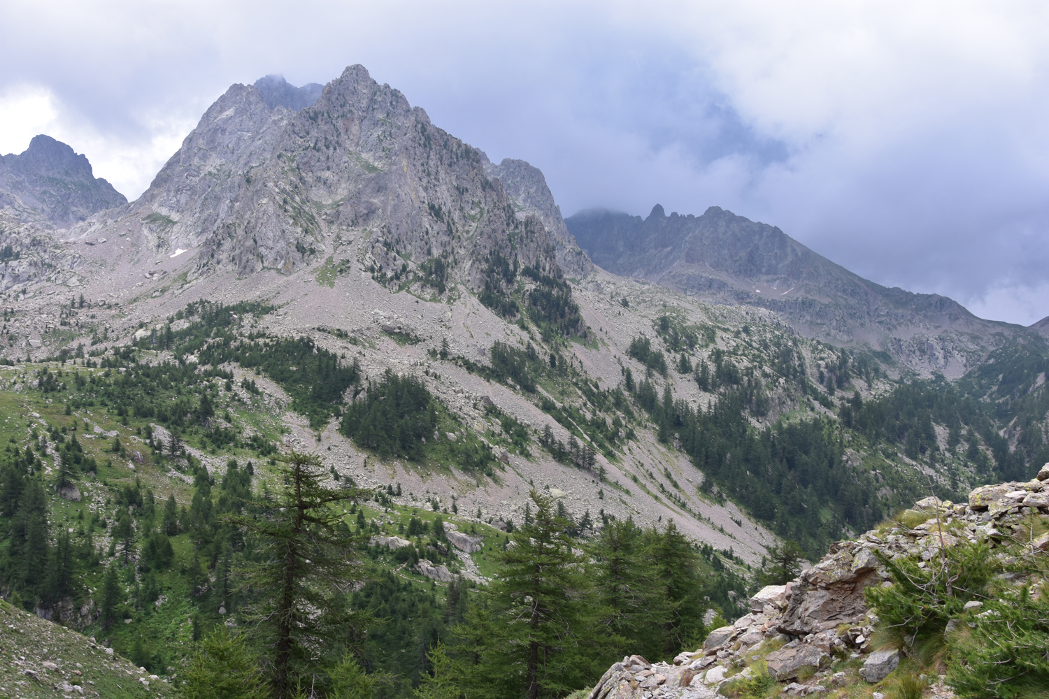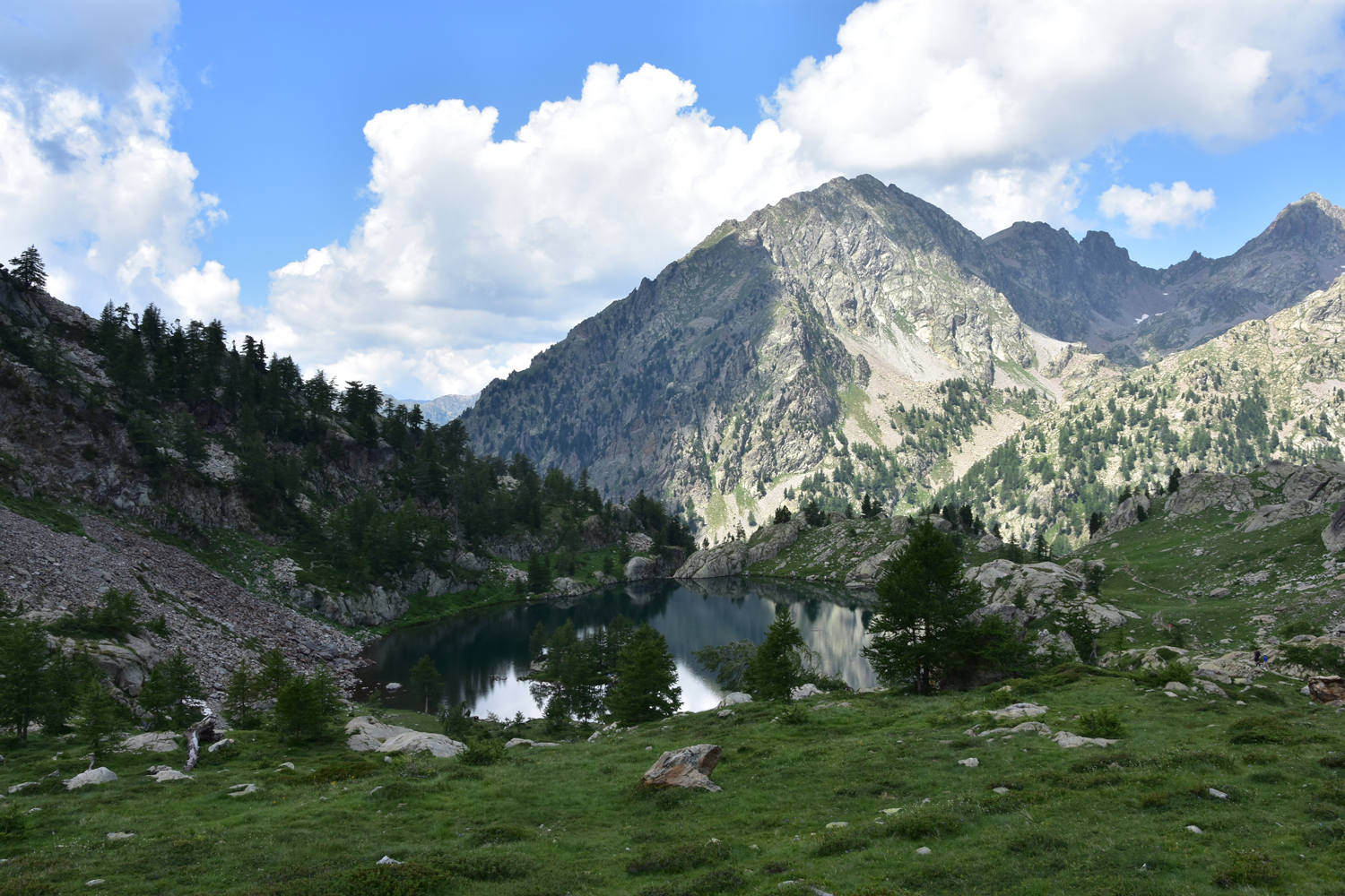 Die heutige Etappe auf dem GR 52 ist nicht besonders anstrengend. Ausgangspunkt ist Le Boréon, das von Saint Martin Vésubie über eine schmale Bergstraße mit dem Auto erreicht werden kann. Der erste Teil der Wanderung ist geprägt von schattigen Wäldern und idyllischen Bächen. Vorbei am Refuge Cougourde, geht es hinauf zu einem schönen Bergsee, dem Lac de Trécolpas. Von hier ist es nicht mehr weit zum Pas des Ladres. Eigentlich hatten wir geplant, noch hinüber zum Col de Fenestre (Colle di Finestra) an der französisch-italienischen Grenze zu wandern, aber dunkle Wolken bringen uns von diesem Vorhaben ab.