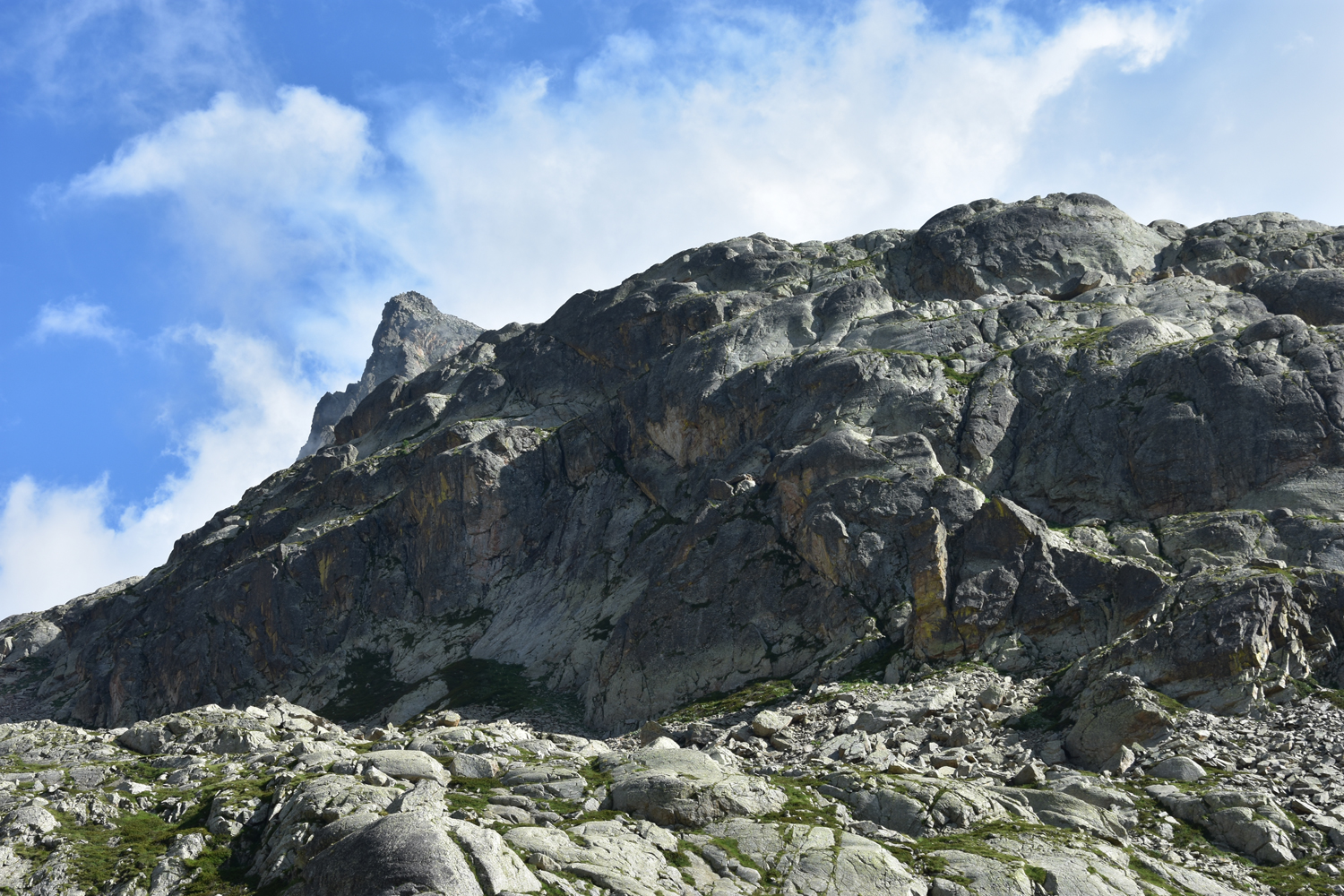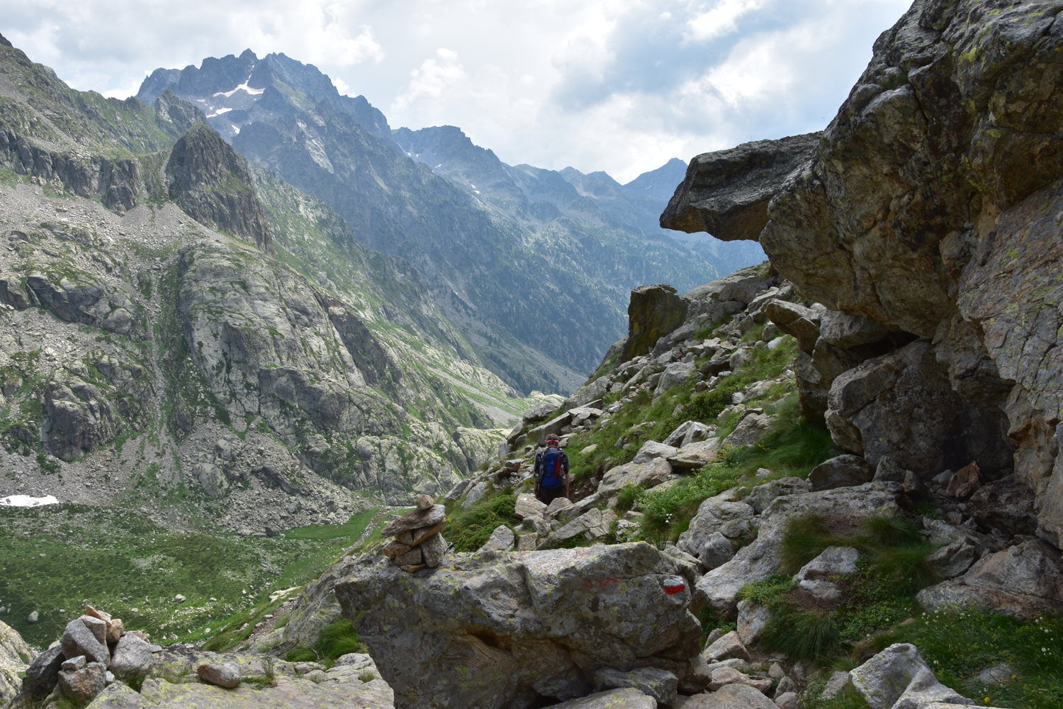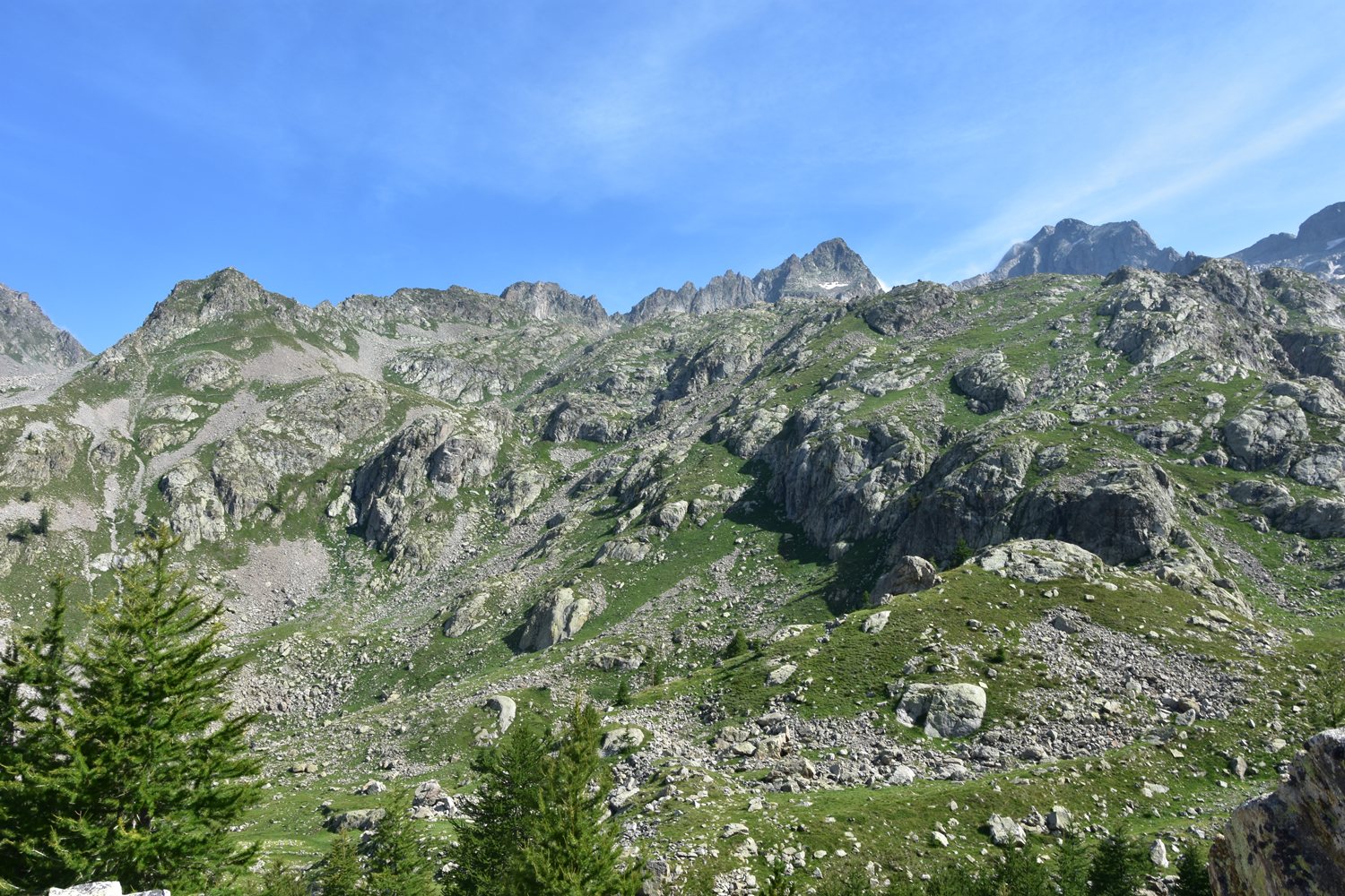 Die heutige GR52-Etappe ist eher noch gemütlicher als die gestrige. Wir starten an der Wallfahrtskirche La Madone de Fenestre, gehen zum Bach hinunter und steigen hoch zum Pas du Mont Colomb, wobei eine kurze Felspassage sogar den Einsatz der Hände verlangt.